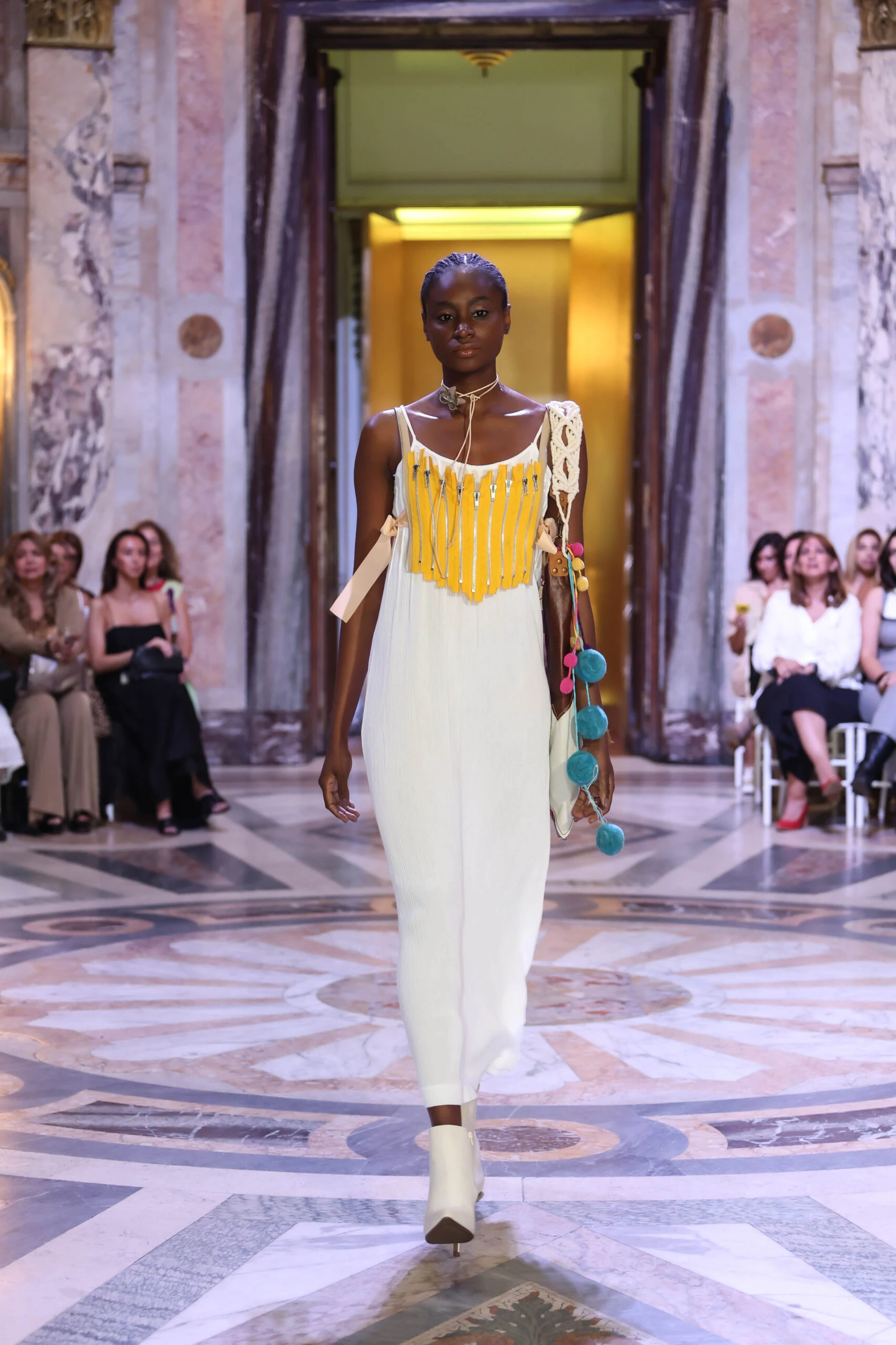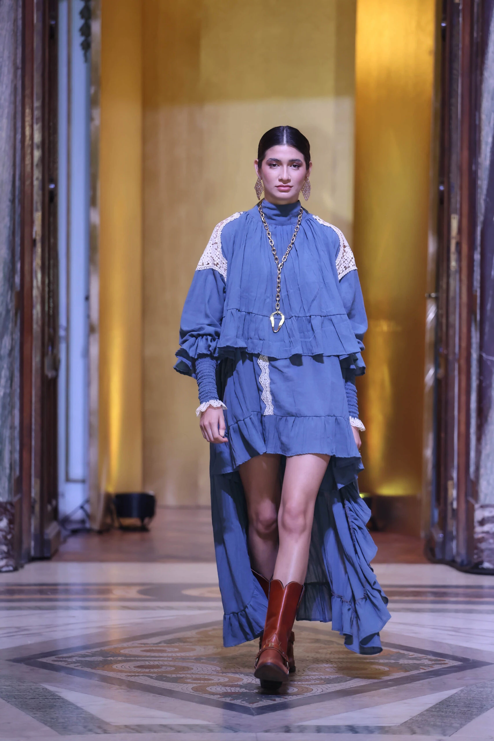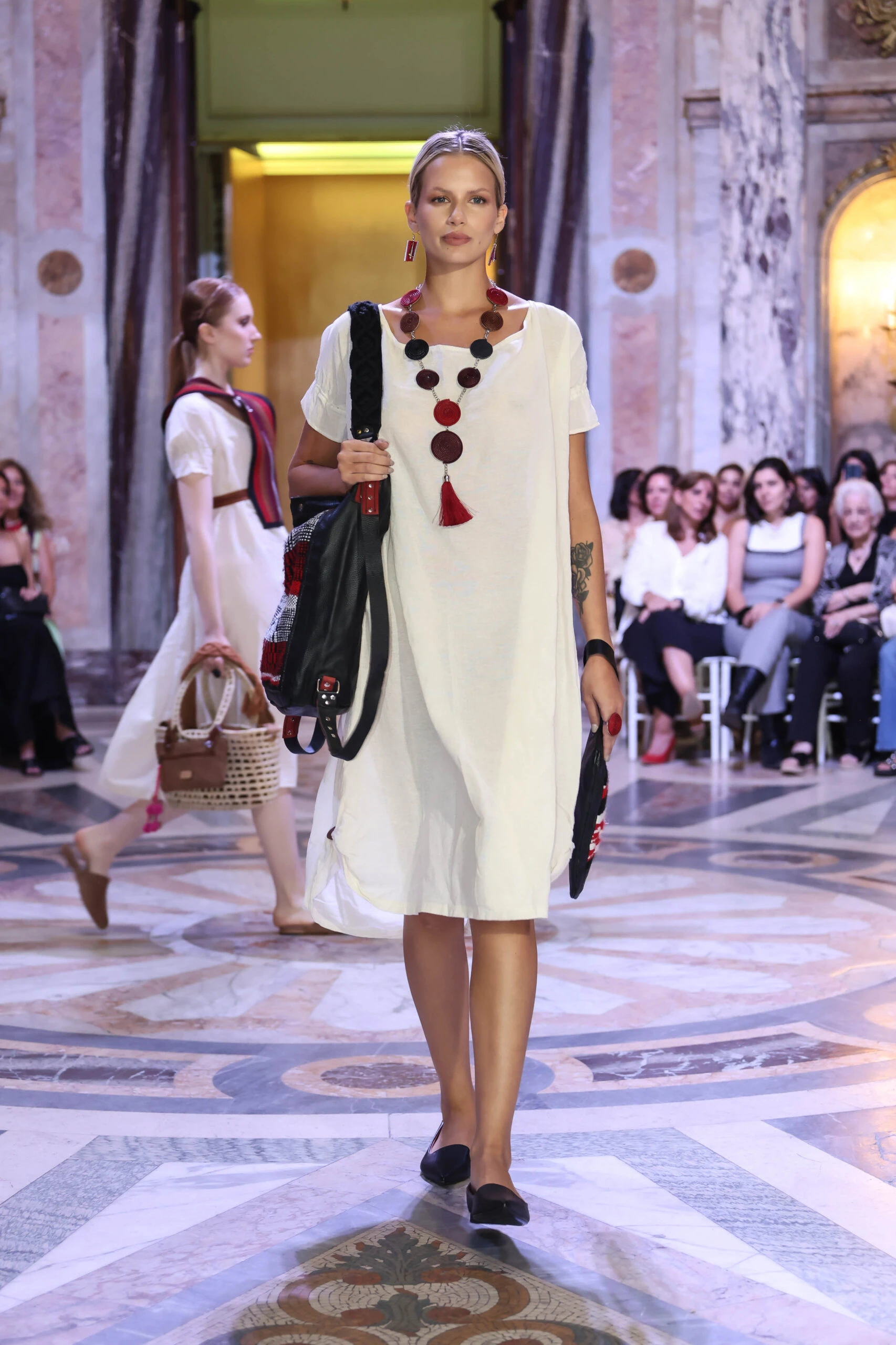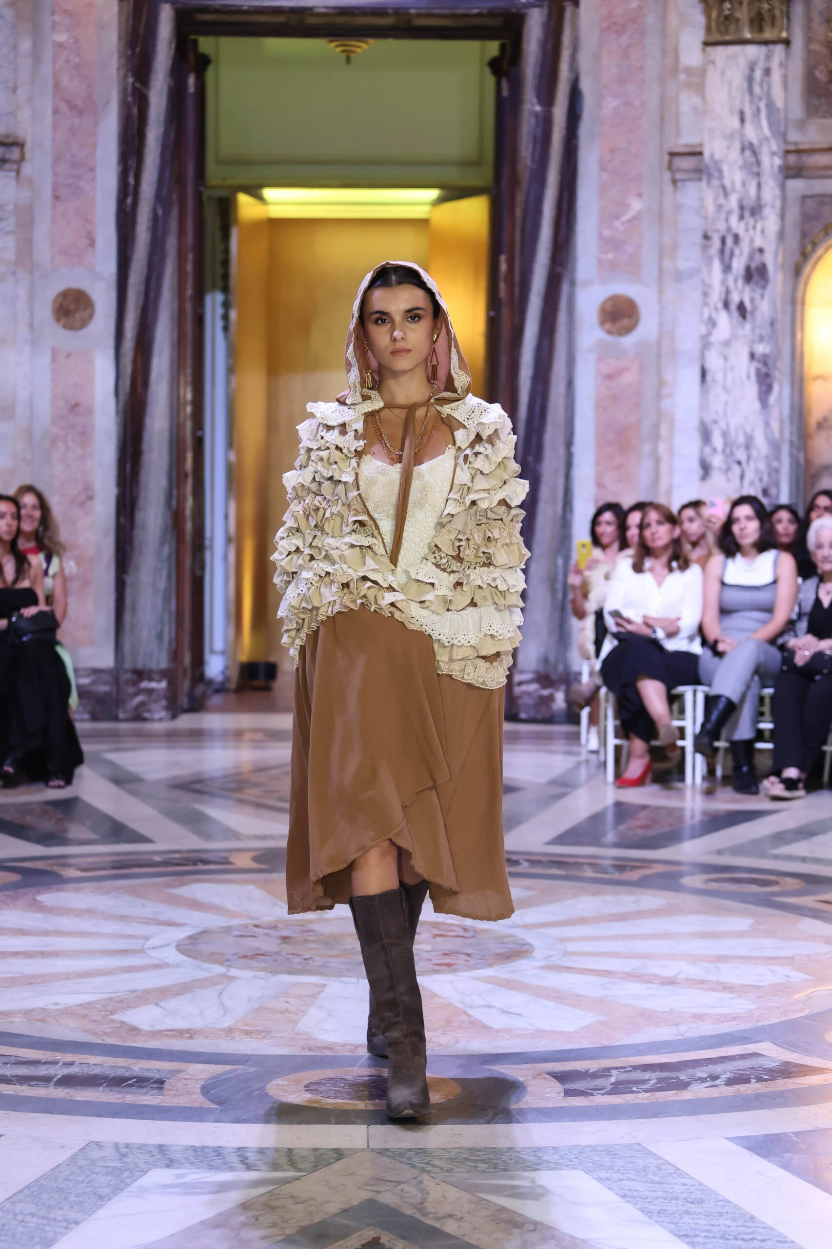 La diseñadora presentó "SENTIR" donde creó esta colección con la convicción de que la moda puede ser un acto de amor propio, una forma de vestir consciente y sostenible donde tu exterior refleja la belleza que llevas dentro. "SENTIR" es una invitación a conectar contigo misma, a vestirte con la verdad de quien sos.