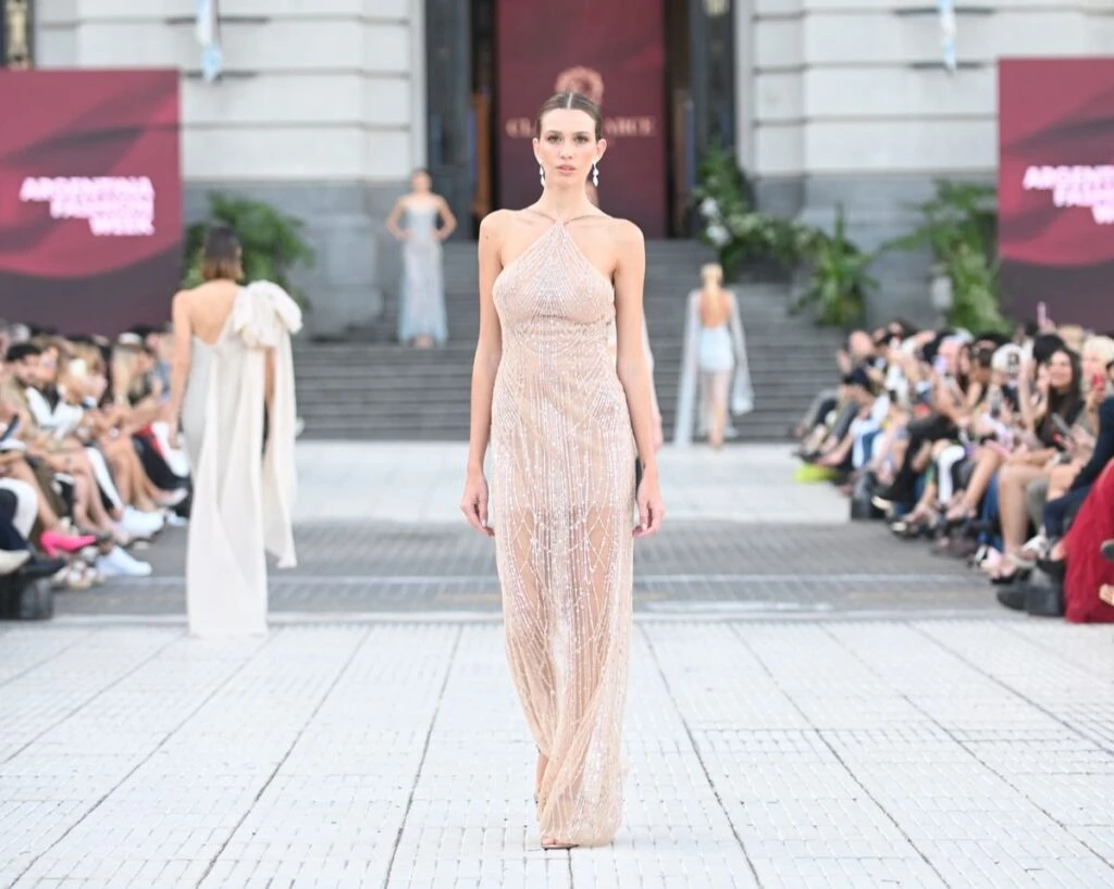 La diseñadora Claudia Arce presenta “Cristal”, una colección de alta costura que fusiona lujo, brillo y sofisticación en cada detalle. Vestidos etéreos en tonos plata, nude, celeste y negro, realzados con destellos de cristales y confeccionados con materiales de primera calidad, redefinen la elegancia con cortes frescos y audaces.