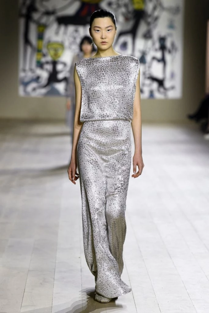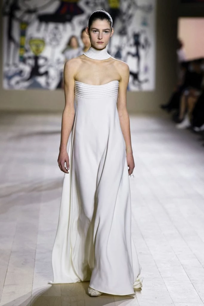 Dominada por la dualidad del blanco y el negro y la contraposición entre looks sobrios y bordados y pedrería fue el hilo conductor que dominó en toda la presentación