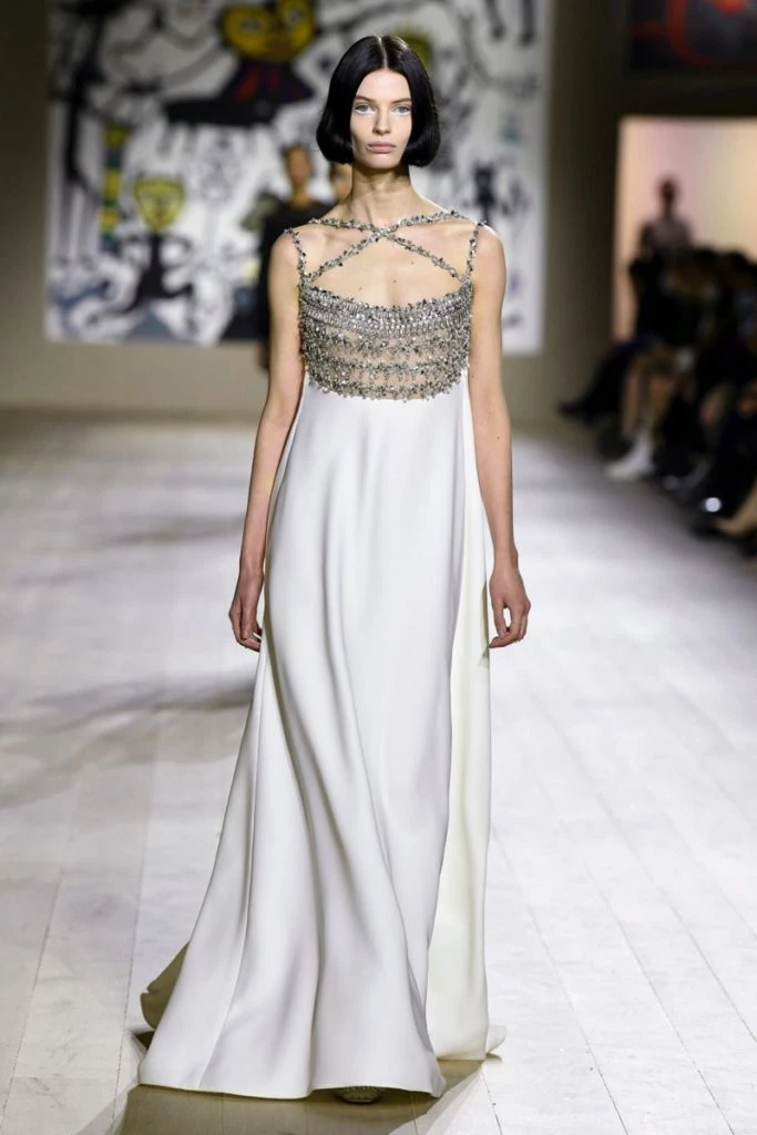 La pedrería y los exquisitos bordados pusieron el toque delicado y festivo a la colección, algo muy esperado en un desfile de Alta Costura.