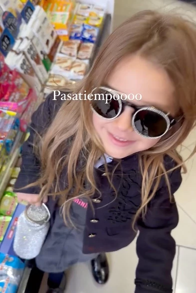 Al igual que su madre, quien había llevado con un vaso con strass en la fiesta Bresh, la niña también mostró su botella de agua metálica, repleta de brillos, un detalle súper glam y divertido que es furor entre las más jóvenes.