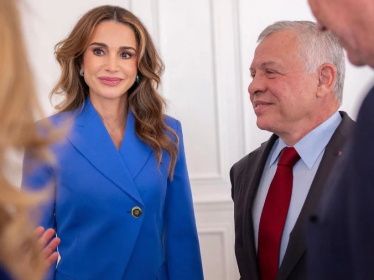 La monarca llevó un traje sastrero azul Francia de JW Anderson que tenía ciertos detalles. El traje era irregular y el pantalón tenía en la parte inferior dos aberturas que dejaban lucir los stilettos en el mismo tono de Dior. La cartera color manteca de Loewe se encargó de cortar el total look de Rania que además, llevó su pelo suelto con ligeras ondas y un maquillaje natural que incluyó gloss nude.