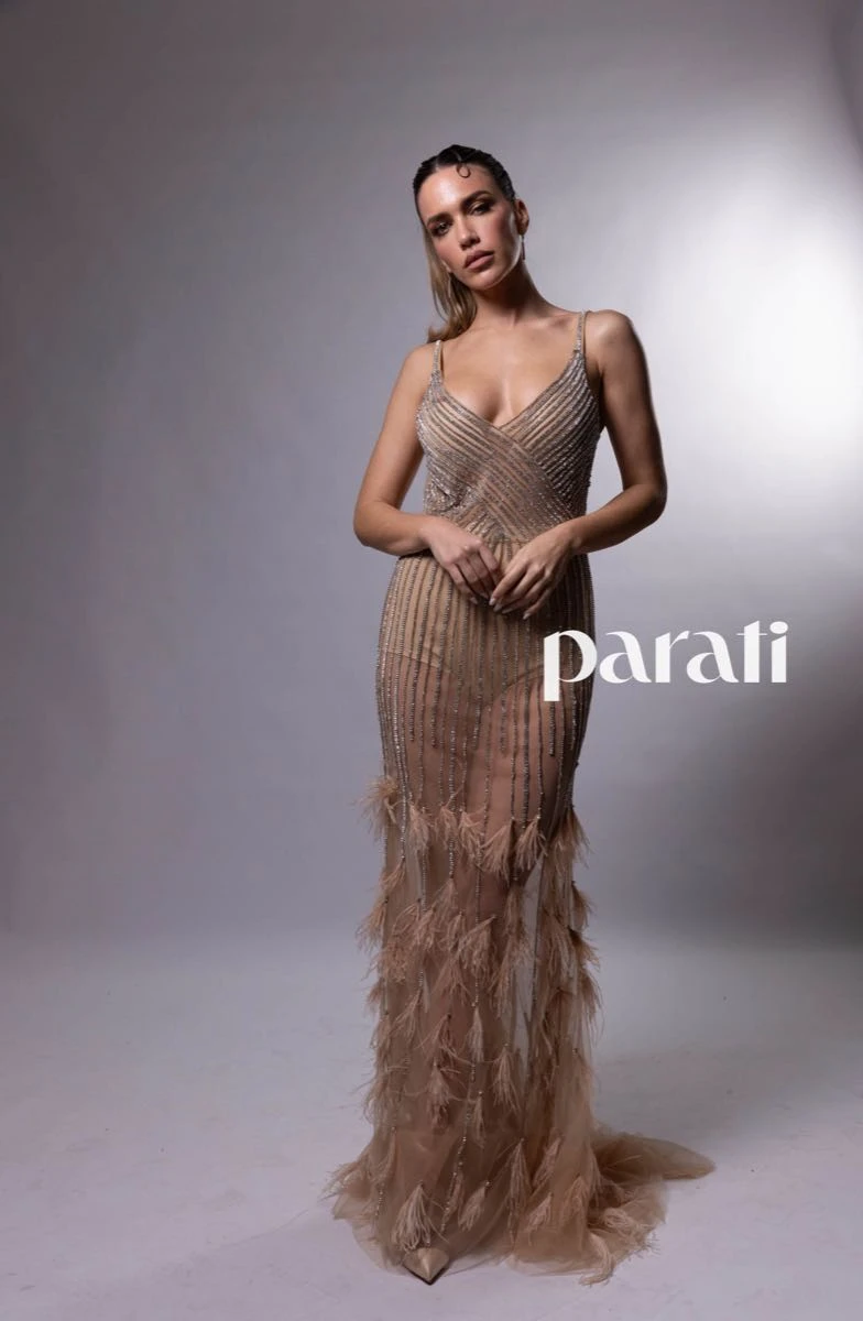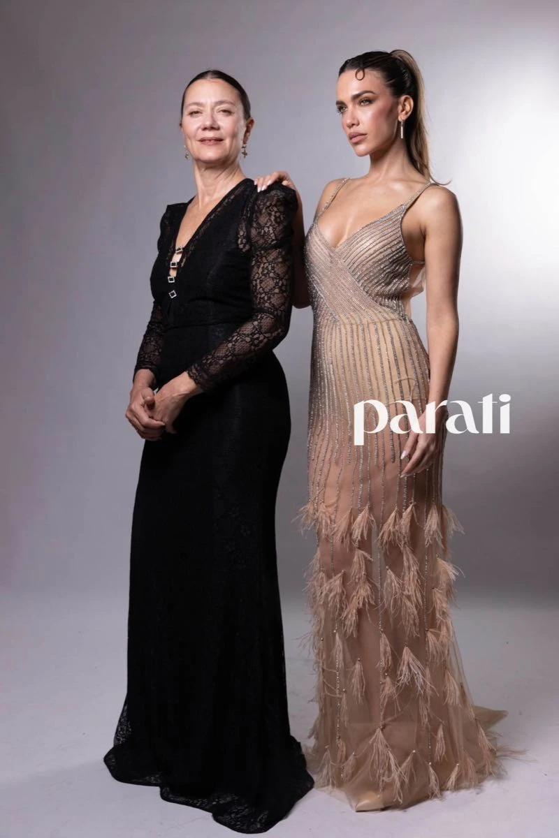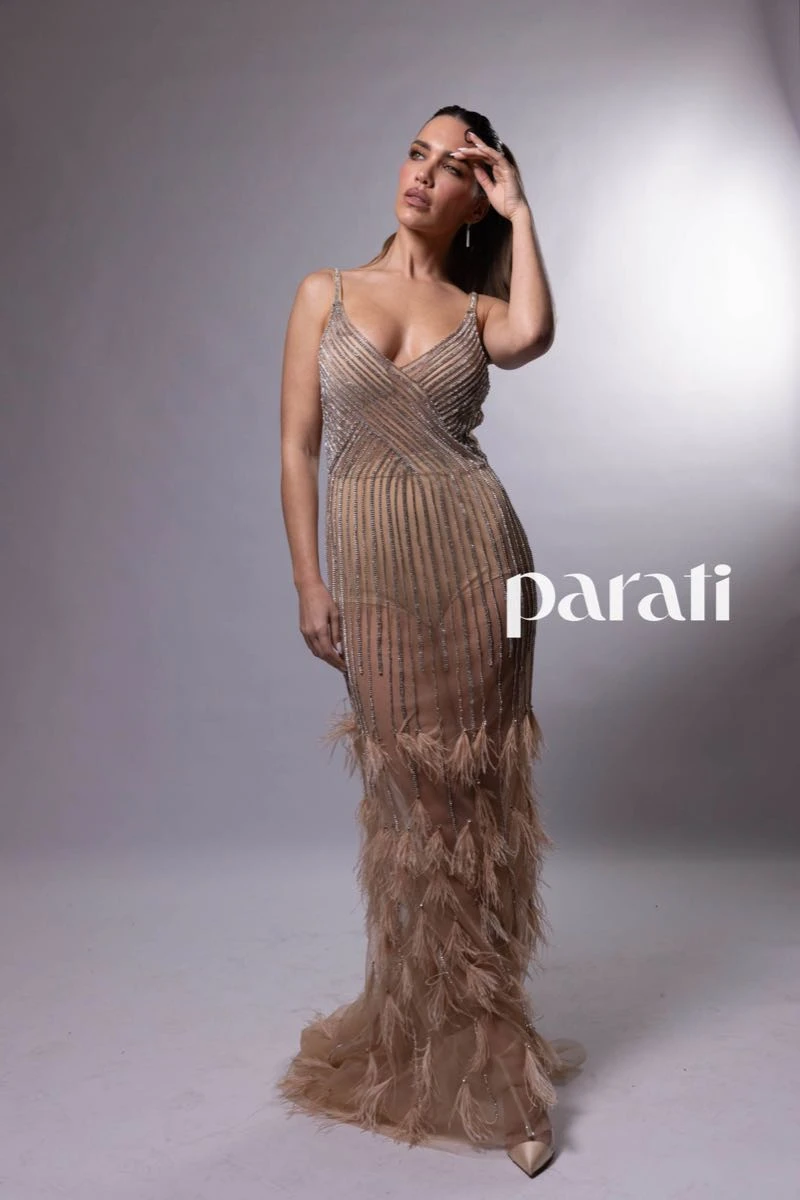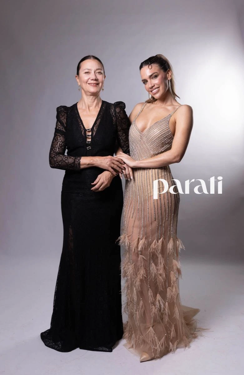 El vestido, de silueta sirena y confeccionado en tul, resaltó por la perfecta fusión entre sensualidad y elegancia contemporánea. Con transparencias estratégicas y bordados que recorren la figura, la prenda generó un efecto visual hipnótico que estiliza y realza cada movimiento.