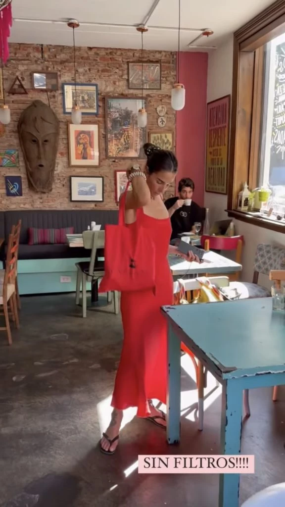 Y como no podía ser menos, para una reunión con su representante Mauricio Catarain, la conductora llevó un vestido de lino largo midi que combinó con un tote bag de tela todo en el mismo tono: rojo. Uno de los colores tendencia de la temporada por el que ya apostaron celebrities de la talla de Rihanna, Bella Hadid y Zendaya.