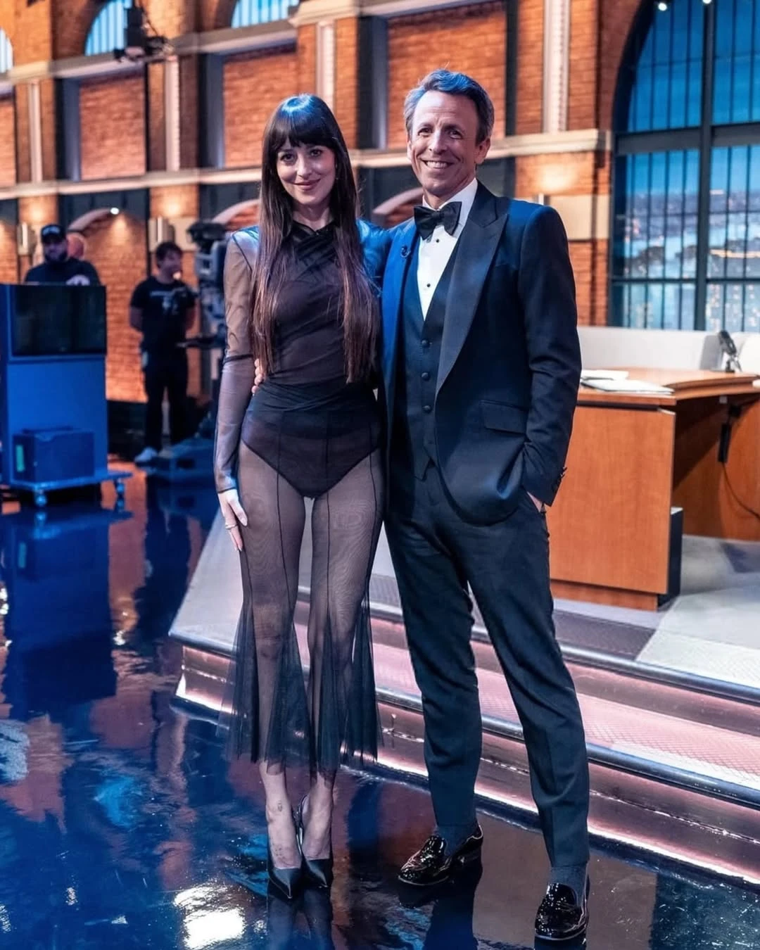 A pocos días de la confirmación de la ruptura con Chris Martin, vocalista de Coldplay, Dakota Johnson reapareció en la televisión. La actriz está en plena promoción de su película "Materialists" donde comparte pantalla con los galanes Pedro Pascal y Chris Evans. Por este motivo, estuvo como invitada en el programa "Late Night with Seth Meyers".