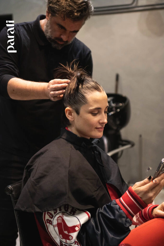 Desde que llegó a Estudio H, Flor Torrente se mostró entusiasmada por el vestido que iba a usar y el concepto en general que quería lograr con el look. El clima en el salón fue descontracturado desde un primer momento, porque el estilista y la actriz ya habían colaborado previamente. Además de charlar sobre el peinado y cuál era el estilo que quería conseguir, Flor hizo historias para su Instagram donde mostró la transformación del antes y después para la gala de Para Ti.