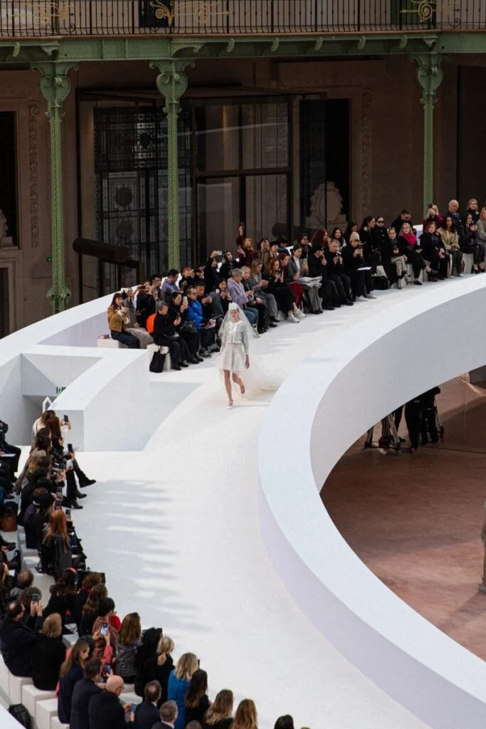 En el centro de la Nave del Grand Palais, la pista está formada por una doble C que dibuja el símbolo del infinito. La infinita excelencia de la Alta Costura, de la cual CHANEL es la Casa más antigua aún en actividad.