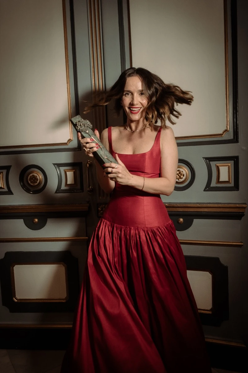Para la ocasión, Oreiro eligió un diseño de Javier Saiach, una de las figuras más destacadas de la alta costura argentina, con quien mantiene una relación creativa de años. El resultado fue un look sofisticado y teatral que captó todas las miradas.