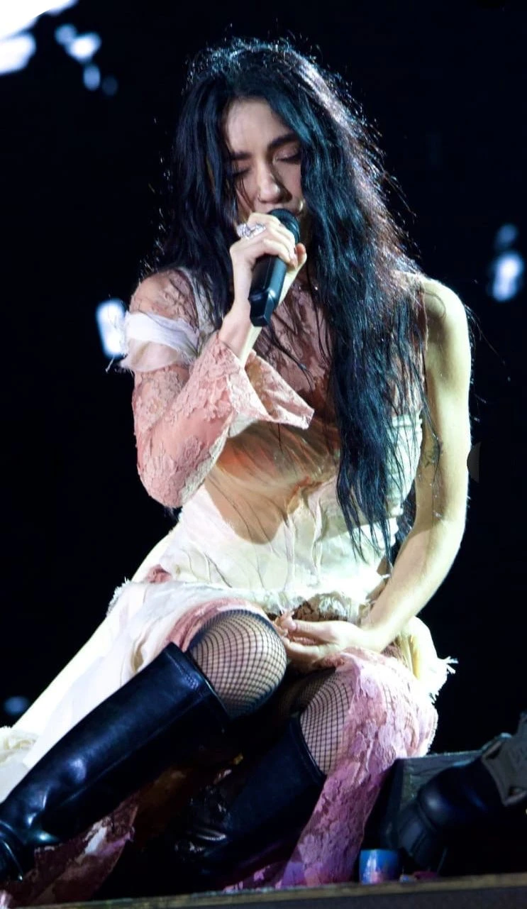 Lali acompañó este look con unas medias de red y unas botas negras, creando uno de sus looks más destacados de la noche. Sin duda, se trató de uno sus estilos más románticos y que le hacen un guiño a su anterior discografía. Si bien "No vayas a tender cuando el demonio llama", marca una impronta bien rockera, el pop todavía está más que presente.