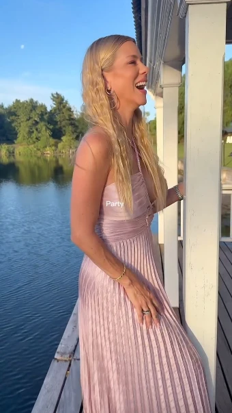Como se puede ver en las fotos compartidas, la modelo llevó un vestido largo en tono rosa empolvado con textura satinada y falda plisada de caída fluida. Esta pieza combinó delicadeza y sensualidad con escote halter cruzado, detalles cut out y una silueta muy estilizada que marcó su figura.