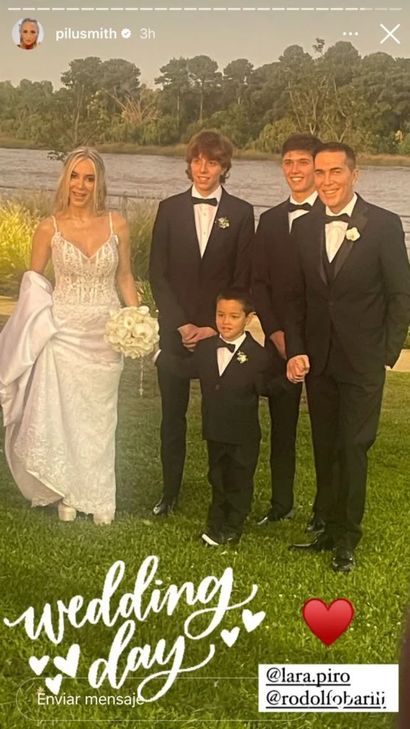 Este jueves se llevó a cabo la fiesta de casamiento de Rodolfo Barili y Lara Piro, después de realizar su ceremonia civil el pasado 1 de diciembre. El evento se realizó en el salón Marina del Norte, ubicado en el Río Luján, y contó con la presencia de familiares, amigos y celebridades.