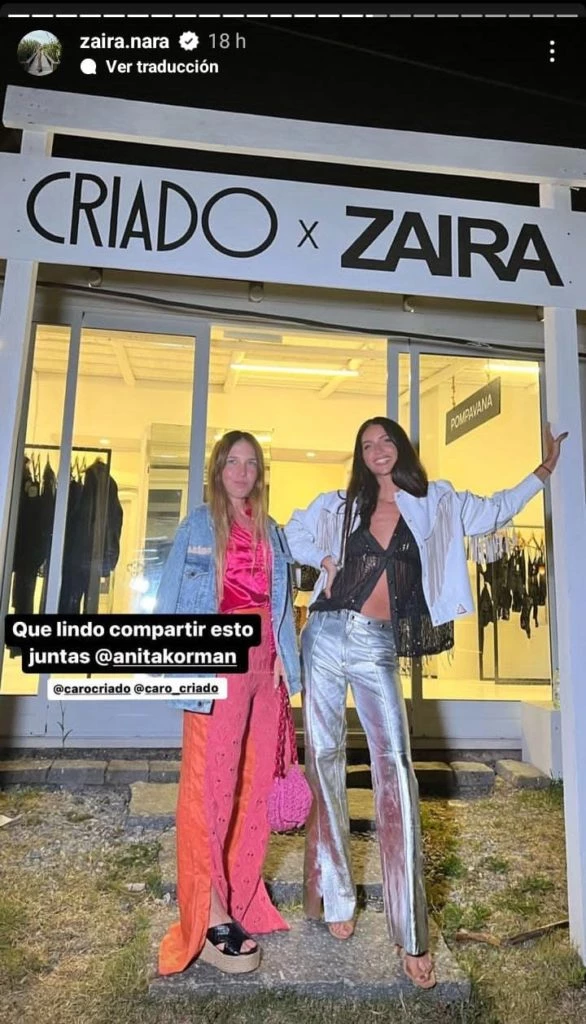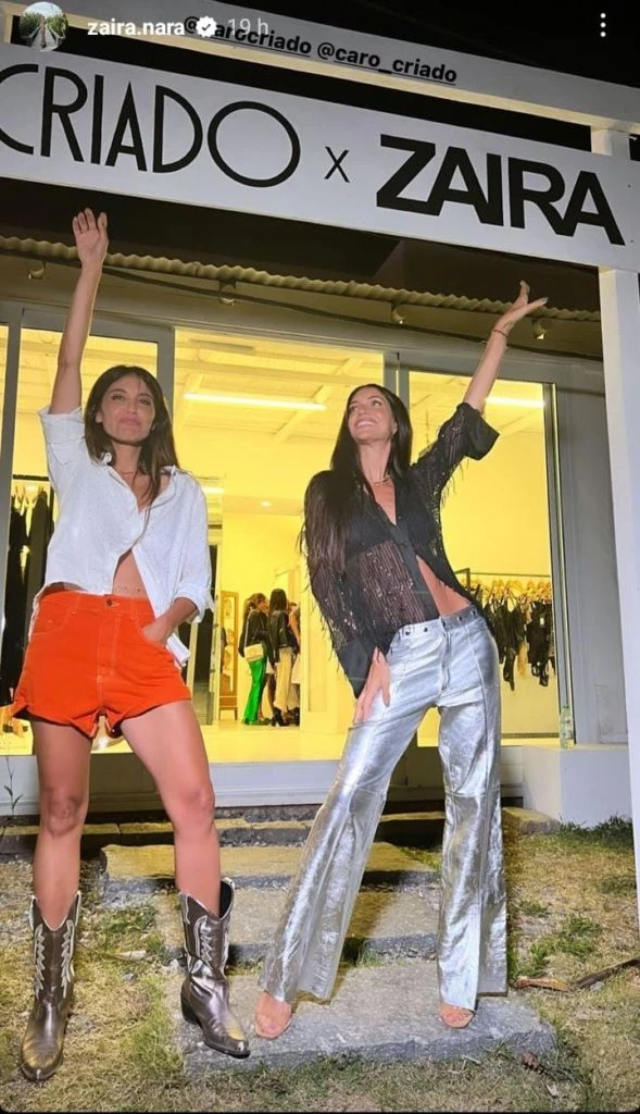 En esta oportunidad, la modelo y hermana de Wanda Nara, asistió a un evento de una marca de indumentaria y lució algunas de sus prendas favoritas. Zaira usó un pantalón tono plata y metalizado, con detalles de tachas circulares.