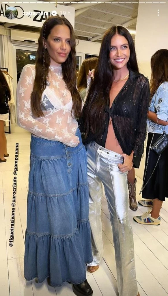 En su caso, Zaira eligió una camisa negra y transparente de gasa con detalles de seda. Ésta tiene bordados y un largo irregular. Además cuenta con lentejuelas y flecos, que le otorgan brillosidad a todo su look. A lo largo del evento, la modelo también sumó una campera de jean clásica, en color gris claro, con algunos flecos.