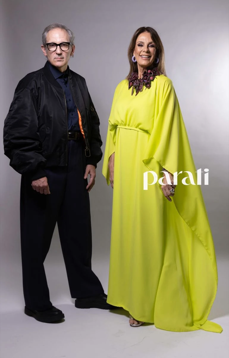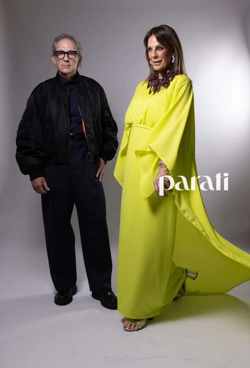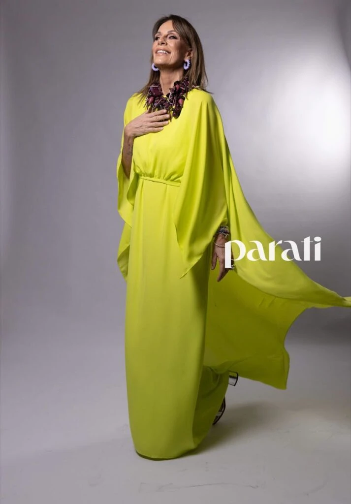 Con una mirada contemporánea y un profundo respeto por la historia de la moda, Adrián Brown diseñó para la Gala de Para Ti una túnica confeccionada en georgette de seda en un vibrante tono verde brillante.