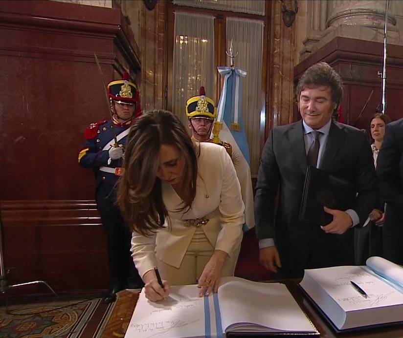 El color elegido por Villarruel no parece casual. Tanto Karina Milei, hermana del presidente, como Fátima Flores, su pareja -que vio la jura desde uno de los balcones del Congreso, sentada al lado de los padres de su novio-, llevaron trajes de pantalón y saco en color blanco.