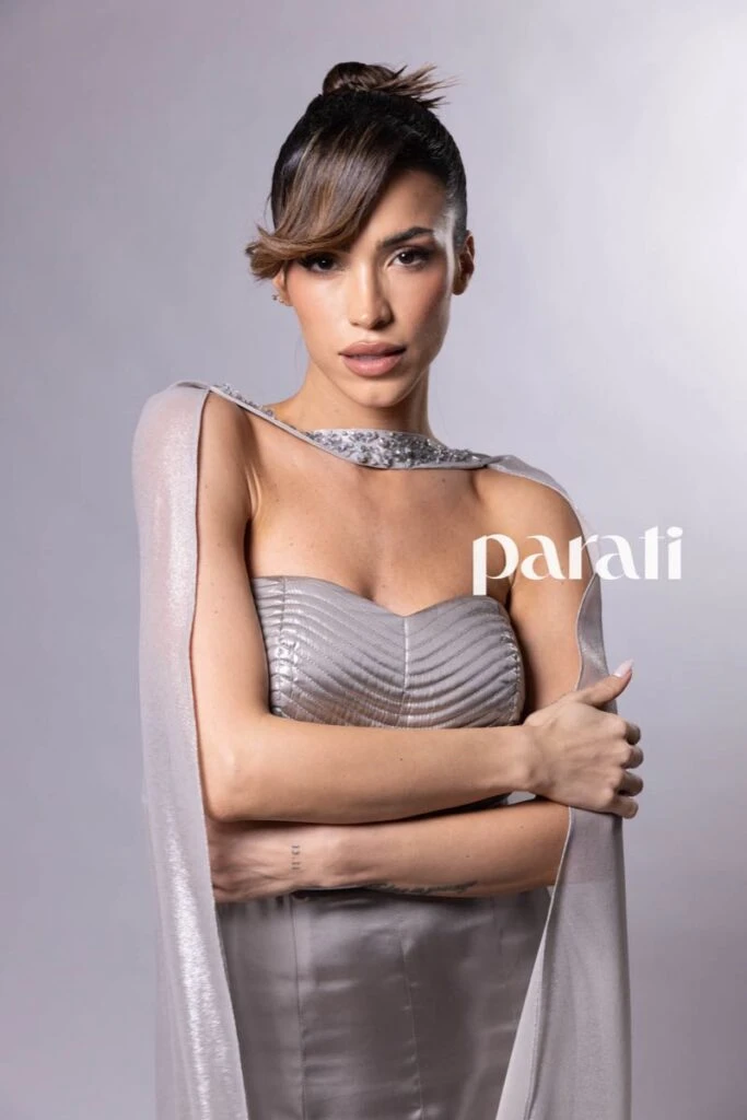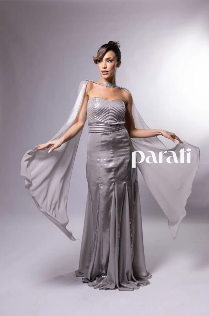 Suami Delelis de VEVÛ fue una de las diseñadoras consagradas en la Gala Para Ti 2025. En esta oportunidad deslumbró con un vestido strapless de inspiración Old Hollywood, confeccionado en textiles futuristas metalizados.