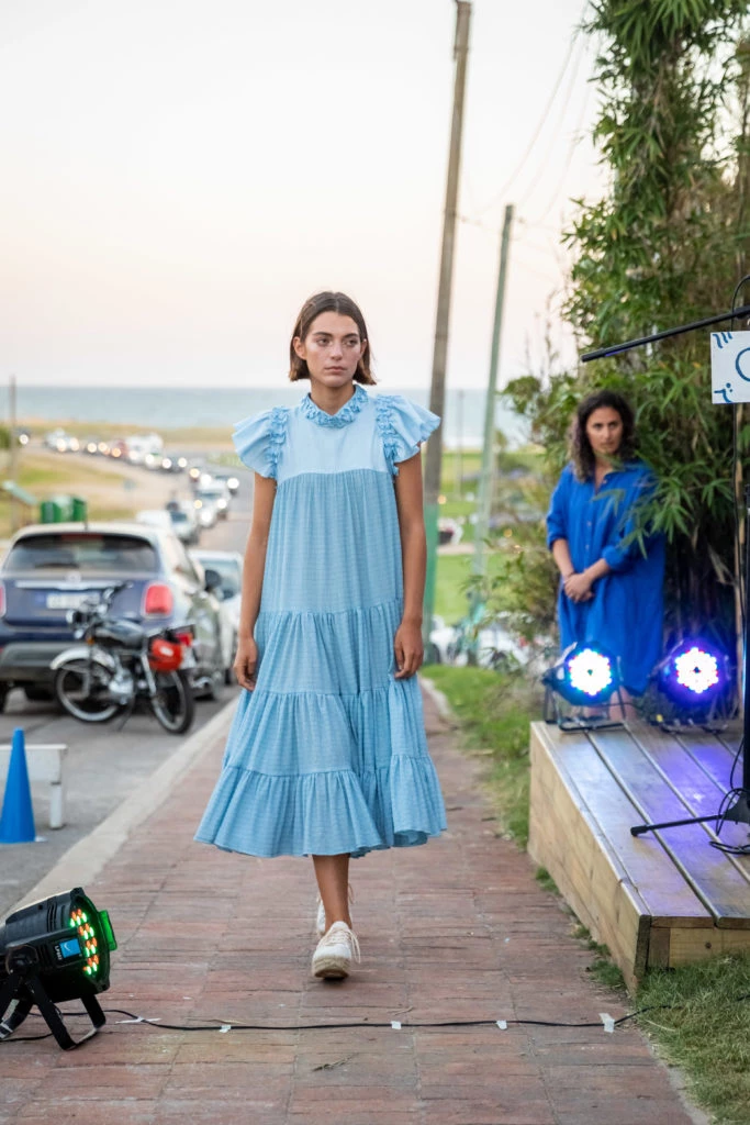 Detrás de Casa Ribera están Mariana Arribas, quien comenzó sus estudios en la escuela de cine Liceo Zubiela en la ciudad de Buenos Aires, en 2011 creó "Storm Productions", una productora boutique audiovisual, y en 2015 la marca de zapatos Furba; y la diseñadora Valentina Karnoubi. Por eso, con Valentina Karnoubi, marca homónima de la diseñadora, arrancaron la temporada con este singular desfile en la vereda y con la playa como telón de fondo.