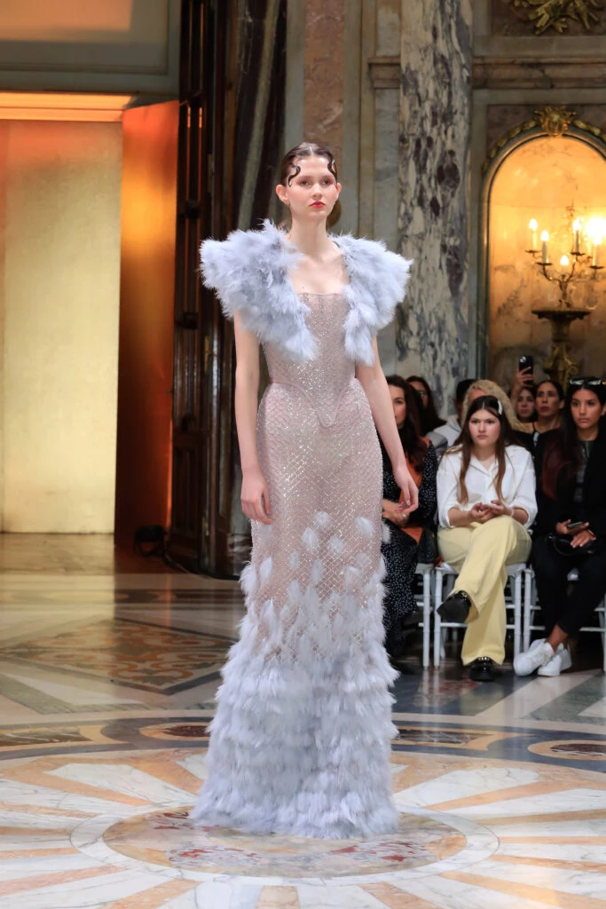 El diseñador paraguayo Andrés Báez presenta su colección “Louise” que toma de inspiración a la excéntrica aristócrata de la belle époque, Luisa Casati o más mediáticamente conocida como la Marquesa Casati.