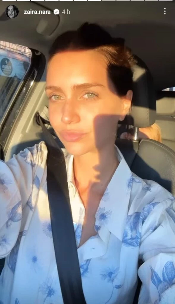Durante su visita al país vecino, la modelo publicó algunas fotografías desde un avión privado, donde llevó un total denim. Allí, Zaira lució una campera de jean clásica y pantalón tiro alto, con roturas, también de jean. Además, lo combinó con unos borcegos negros y un suéter marrón con flecos en las mangas, y como siempre, llevó unos lentes oscuros.
