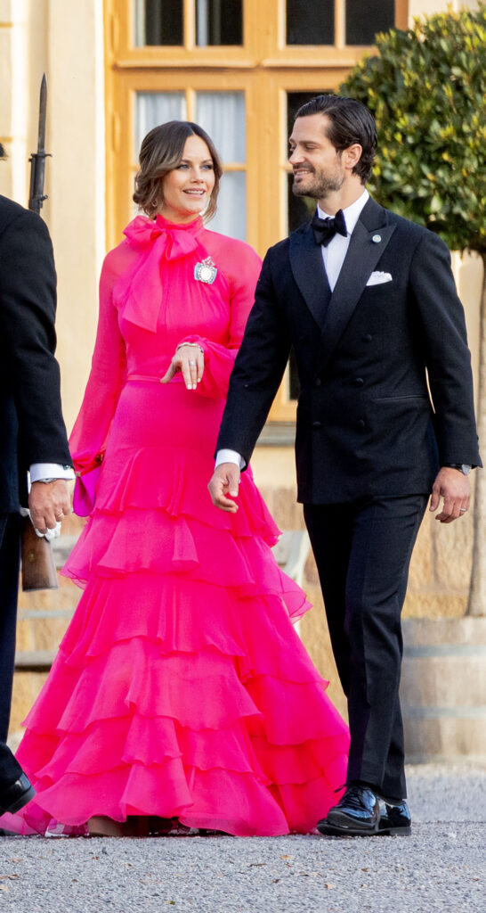Carlos Felipe de Suecia y su mujer, Sofía de Suecia, también se llevaron todas las miradas. La princesa llevó un diseño de Lars Wallin en color fucsia con cuello halter, mangas puffy semitransparentes, corte a la cintura y falda larga confeccionada en capas.