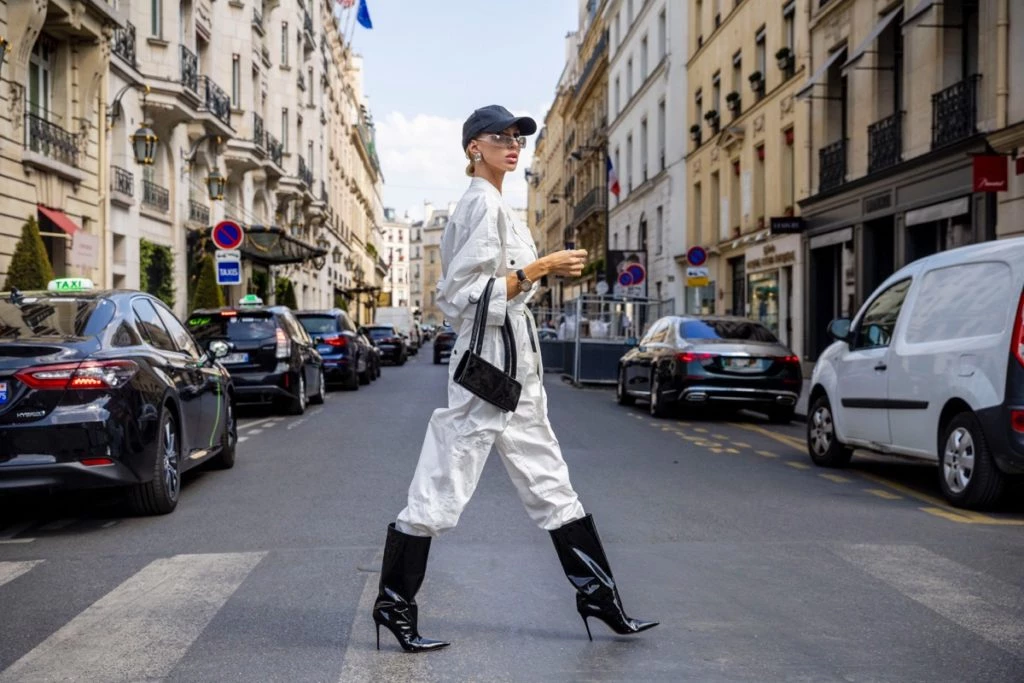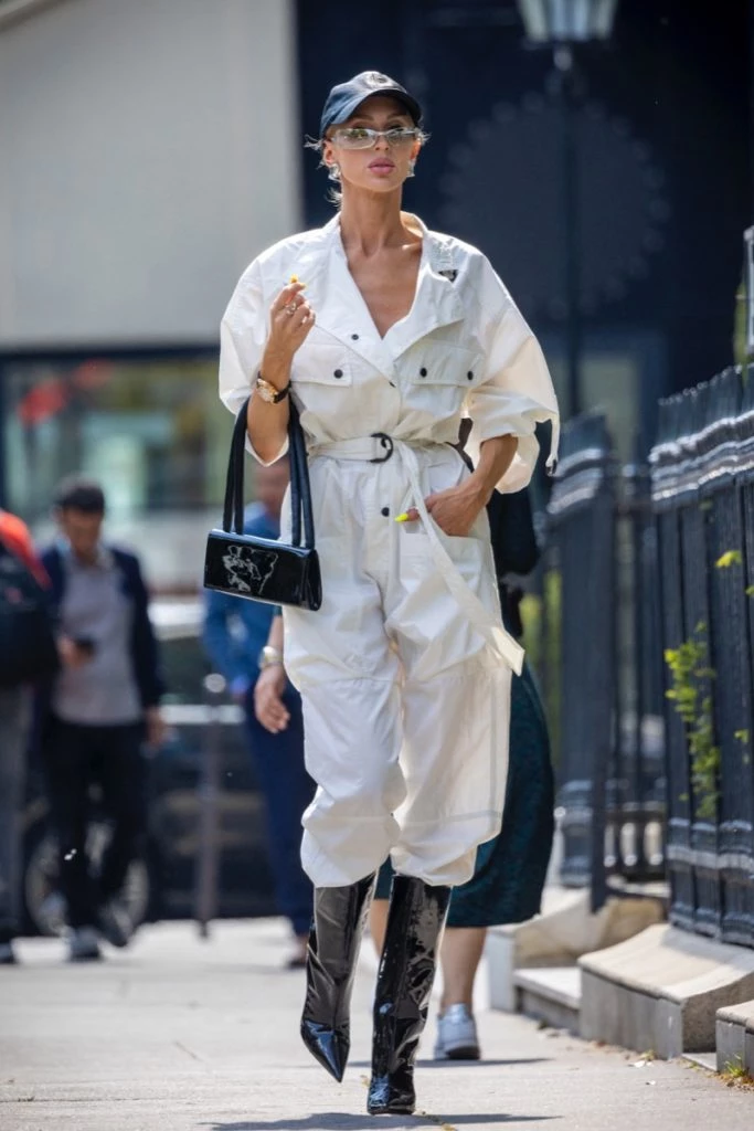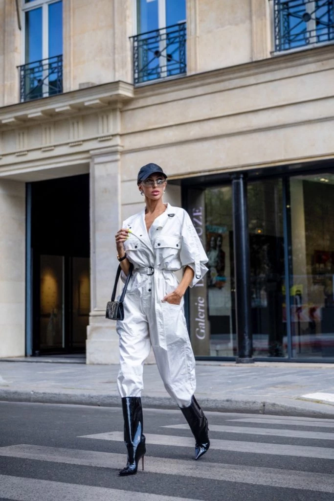 En su estadía por la capital francesa, la actriz paseó por las calles con un mono oversize de color blanco con grandes bolsillos y lado en la cintura, un ítem de tendencia de esta temporada.