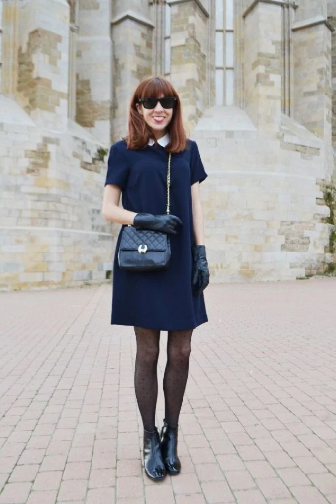 Un look más sofisticado que también complementan a la perfección las medias largas con lunares.