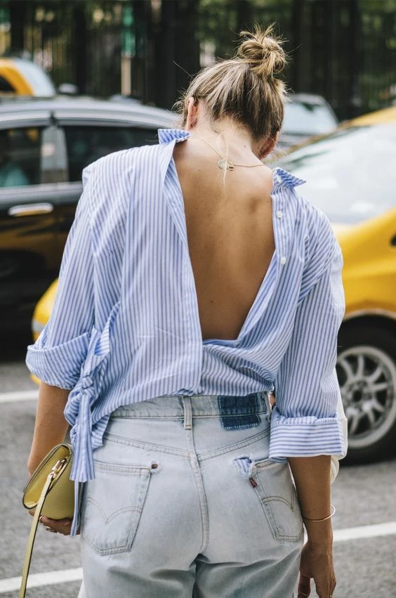 Hay muchas formas de aplicar esta tendencia, se pueden llevar completamente desabotonadas y solo cerrar el primer botón asi deja toda tu espalda al descubierto.