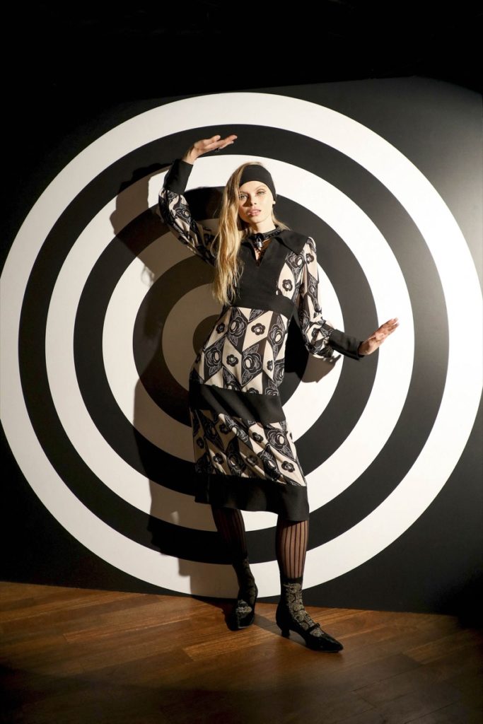"Cuando comencé a pensar en esta colección, estaba pensando en el período de New Wave. Me encantaron los artistas que hicieron todas las portadas de álbumes de The Psychedelic Furs, Billy Idol, David Bowie, que fueron Derek Boshier y Barney Bubbles. Cuando estaba mirando el arte, pensé que era muy Art Deco, así que lo mezclé; luego incorporé Mod en todo porque vi un gran documental sobre 'Ready, Steady, Go', que era un programa de televisión en Inglaterra en los años 60. Debutarían bandas: su anfitriona Cathy McGowan fue la que marcó tendencia. Tenía un corte de pelo de Vidal Sassoon y usaba Mary Quant. Lo que fuera que se pusiera marcó el ritmo y las bandas que asistieron al espectáculo fueron las número uno en Inglaterra la semana siguiente. Los Beatles, los Stones, todos los primeros grupos británicos", comentó la diseñadora.