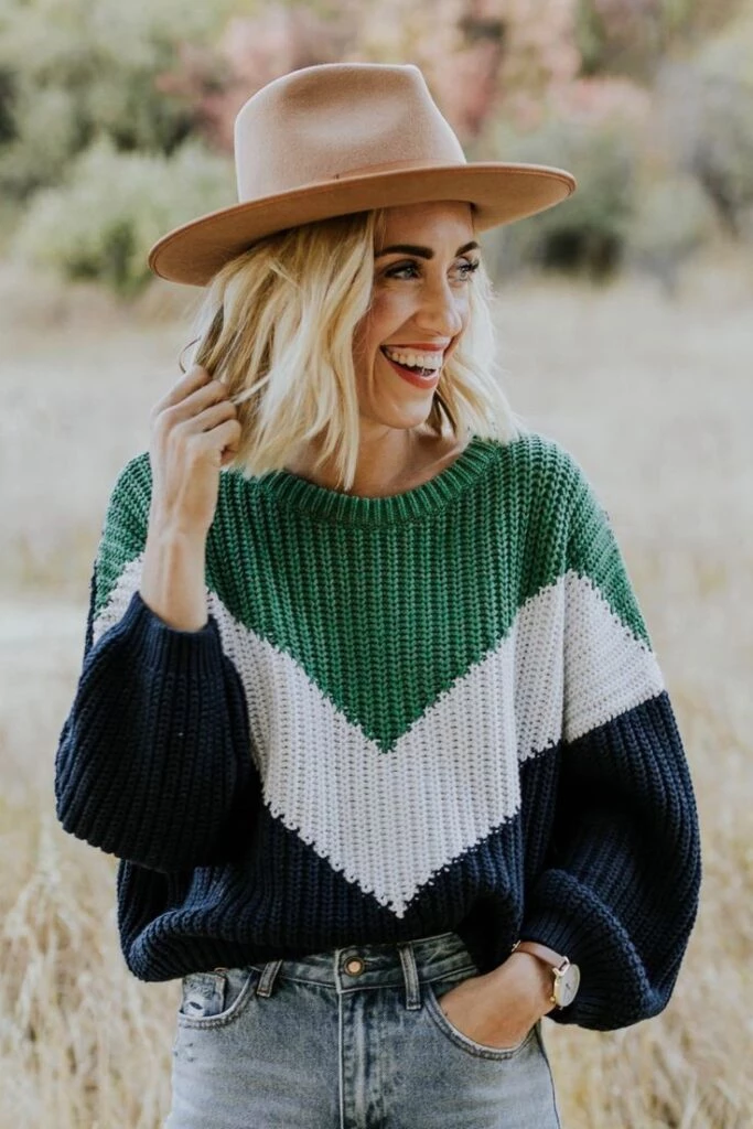 Los suéteres con cuello en V son grandes aliados por su versatilidad. Estos pueden combinarse con blazers o con chalecos y variando el color entre uno y otro.