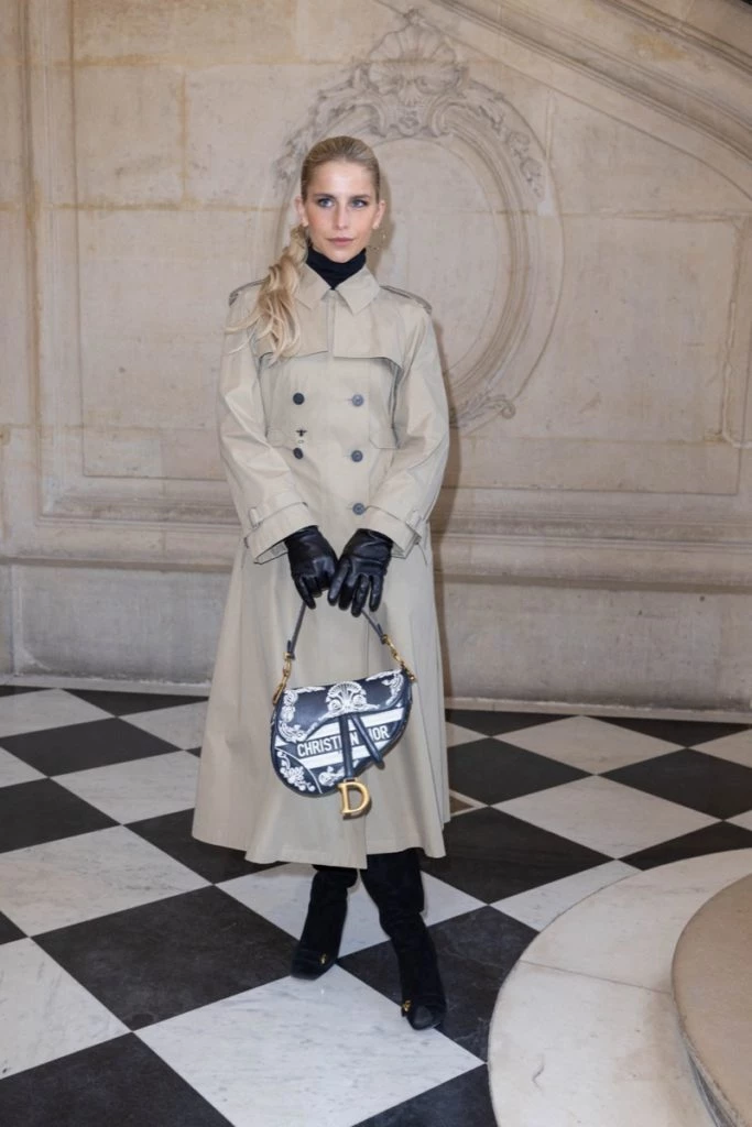 Por su parte, la influencer Caroline Daur, adoptó un clásico trench que lo combinó con la icónica cartera de la maison.