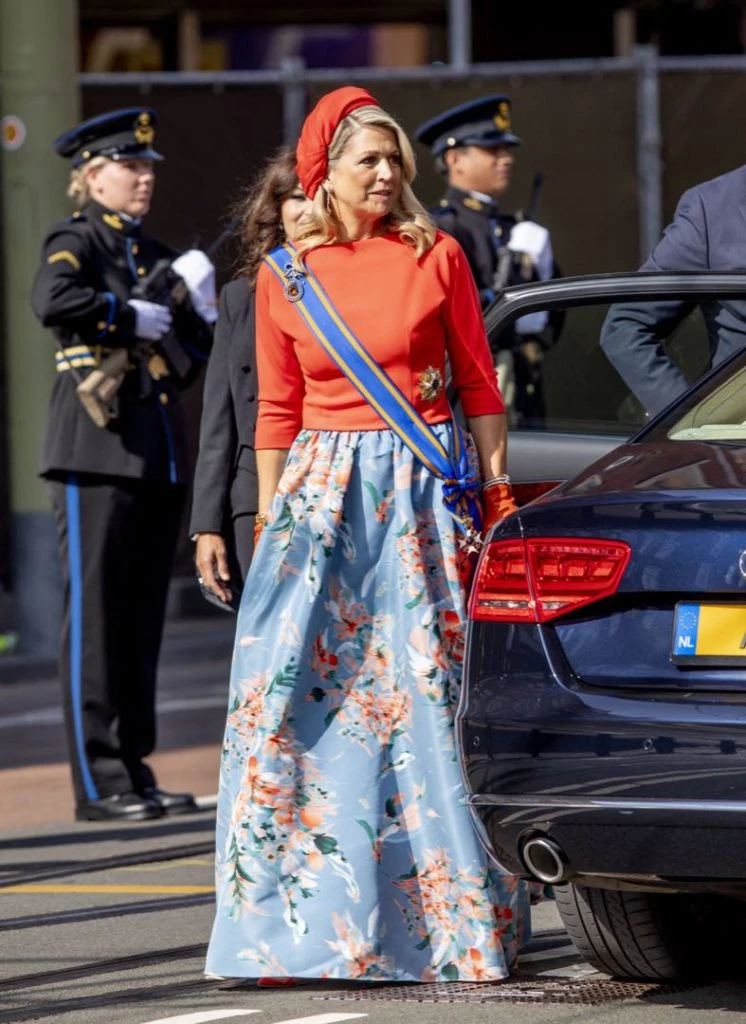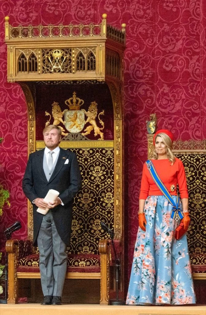 En el día del Rey, la reina de Holanda acompañó a su marido con un fascinante outfit construído por dos piezas de la firma Natan, una de sus favoritas.