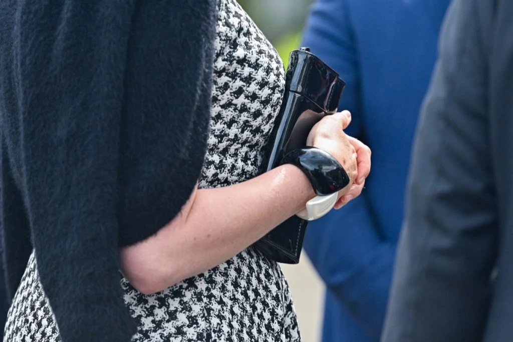 Lo más distinguido de su look es que llevó los zapatos en el mismo género del vestido y combinó con una pulsera también bitono.