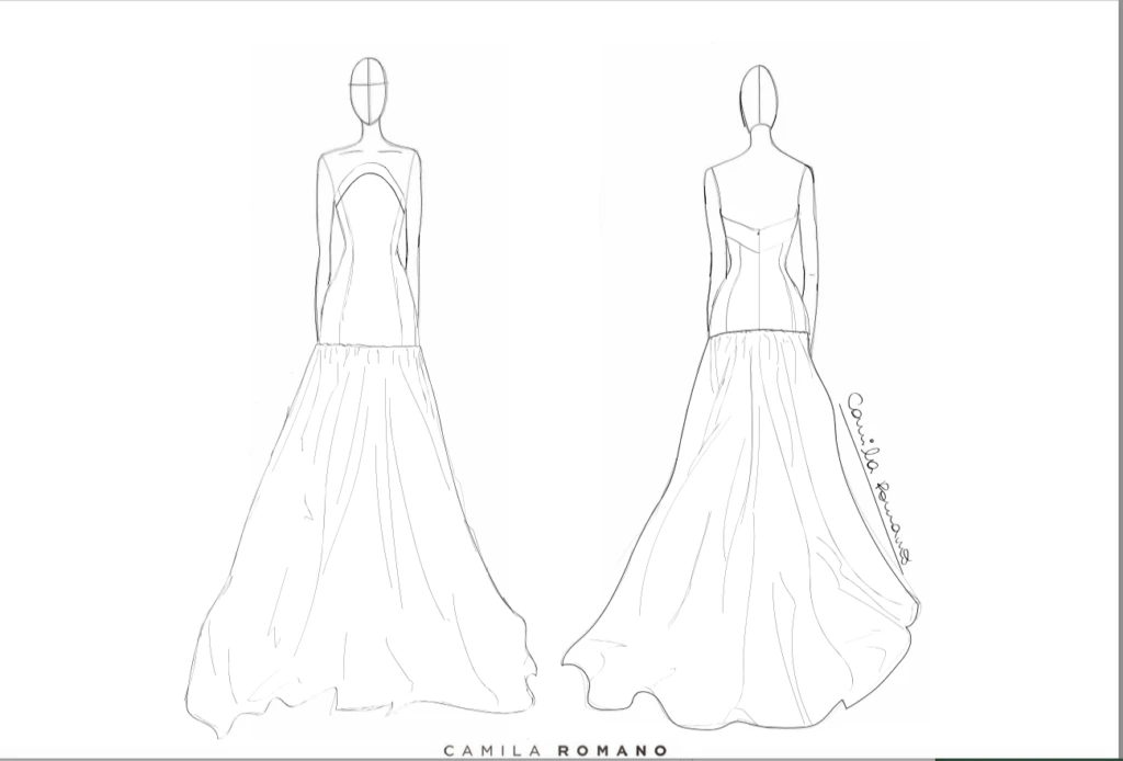 El diseño elegido fue una creación de la diseñadora argentina Camila Romano, quien se ha convertido en una de las favoritas del universo fashion local por sus piezas de alta costura contemporánea.