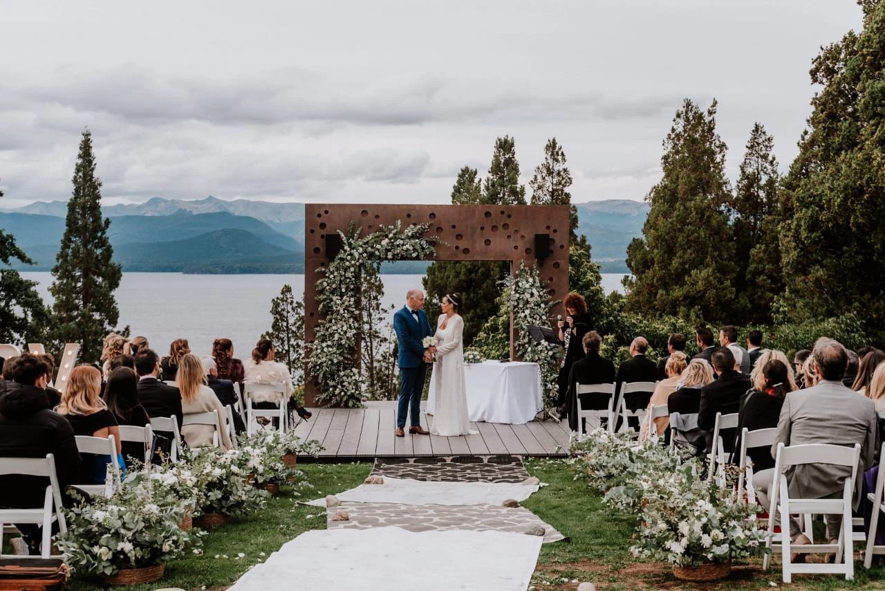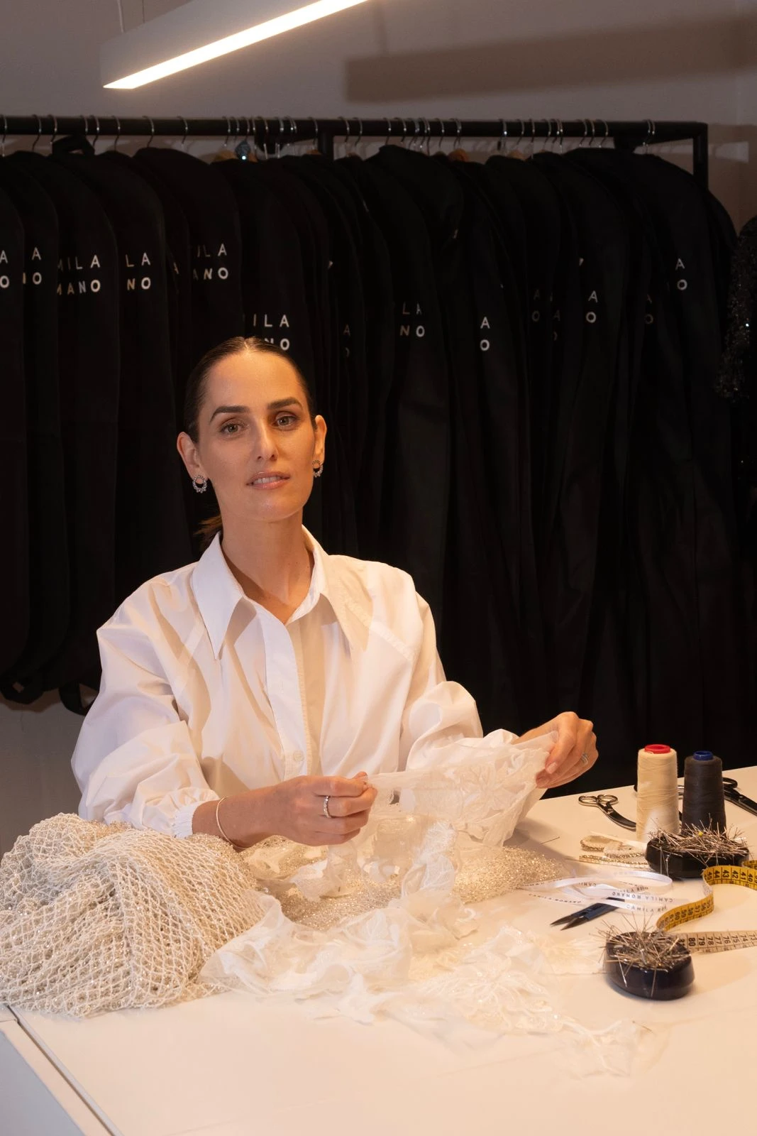 Para cerrar, Camila recuerda una experiencia que la marcó: “Una novia que se casó en su hotel en Bariloche. Hicimos un vestido simple, en tul bordado con hilos de seda, y para la ceremonia lo acompañamos con un spolverino de chiffon de seda natural en color off white. Cuando me mandó la foto, junto al novio, con el lago de fondo y las montañas nevadas, entendí que habíamos creado algo único, en perfecta armonía con el paisaje. Fue pura belleza y calma, como el invierno mismo”.