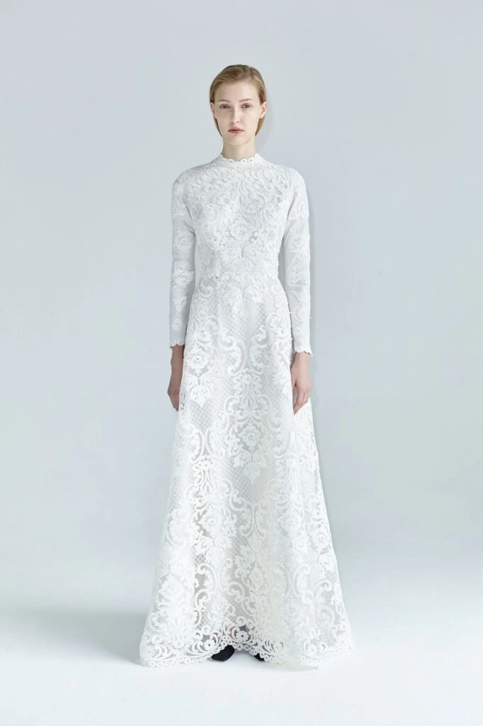 “Se pueden sumar capas de terciopelo, prendas tejidas, ruanas y detalles bordados en hilos de seda. Son vestidos con cuerpo, sí, pero que se aligeran gracias a accesorios como pueden ser colas o mangas desmontables, que se pueden quitar después de la ceremonia”, aclara la diseñadora.