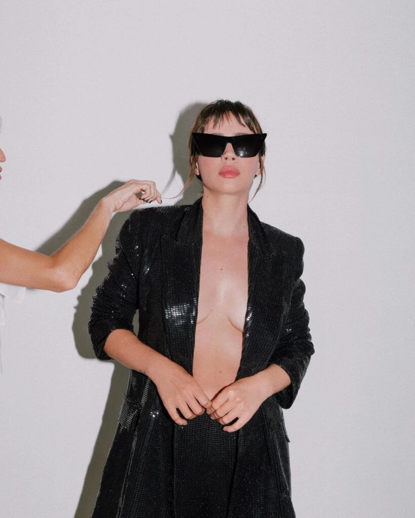 Eso no fue todo ya que para sumarle sensualidad, la actriz no usó sostén en esta sesión fotográfica, pero podría combinarse con algún crop top. En cuanto a los accesorios elegidos, sólo optó por unas gafas de sol muy cancheras.