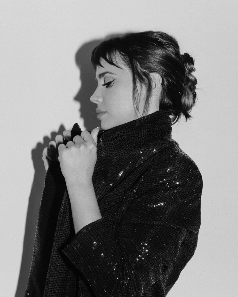 Si analizamos su make up, Cid llevó un delineado cat eye negro, sombreado de ojos en color rosa, labial nude y rubor en tono coral. Para su peinado, eligió usar un recogido con mechones al frente y flequillo desmechado, luciendo con su estilo propio.