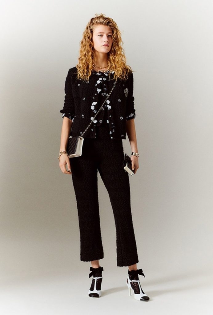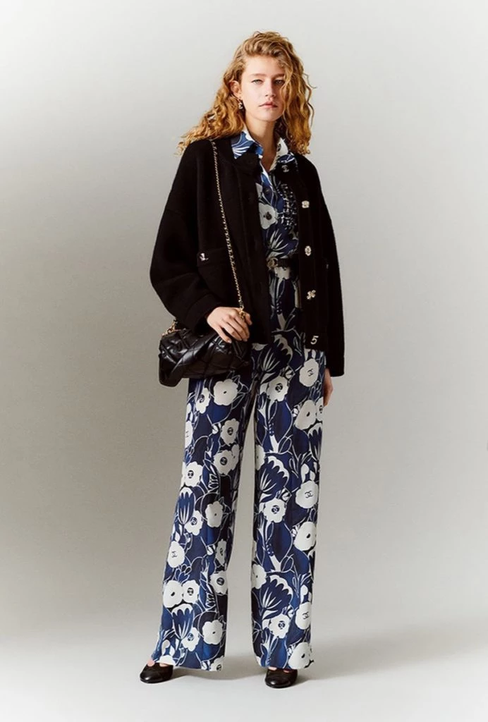 Como novedad, se imprimió la flor de la camelia (icónica de Chanel) en suéteres, camisas, vestidos y pantalones pasando a ser una de los prints más importantes de la temporada.
