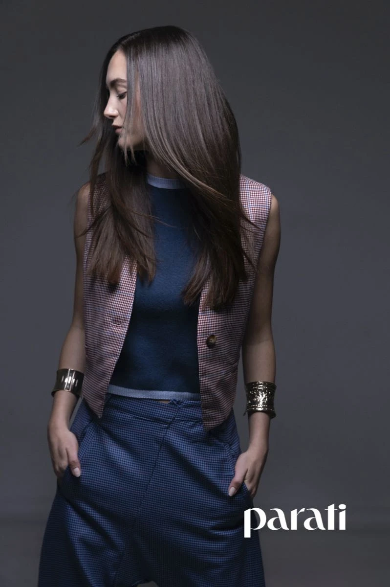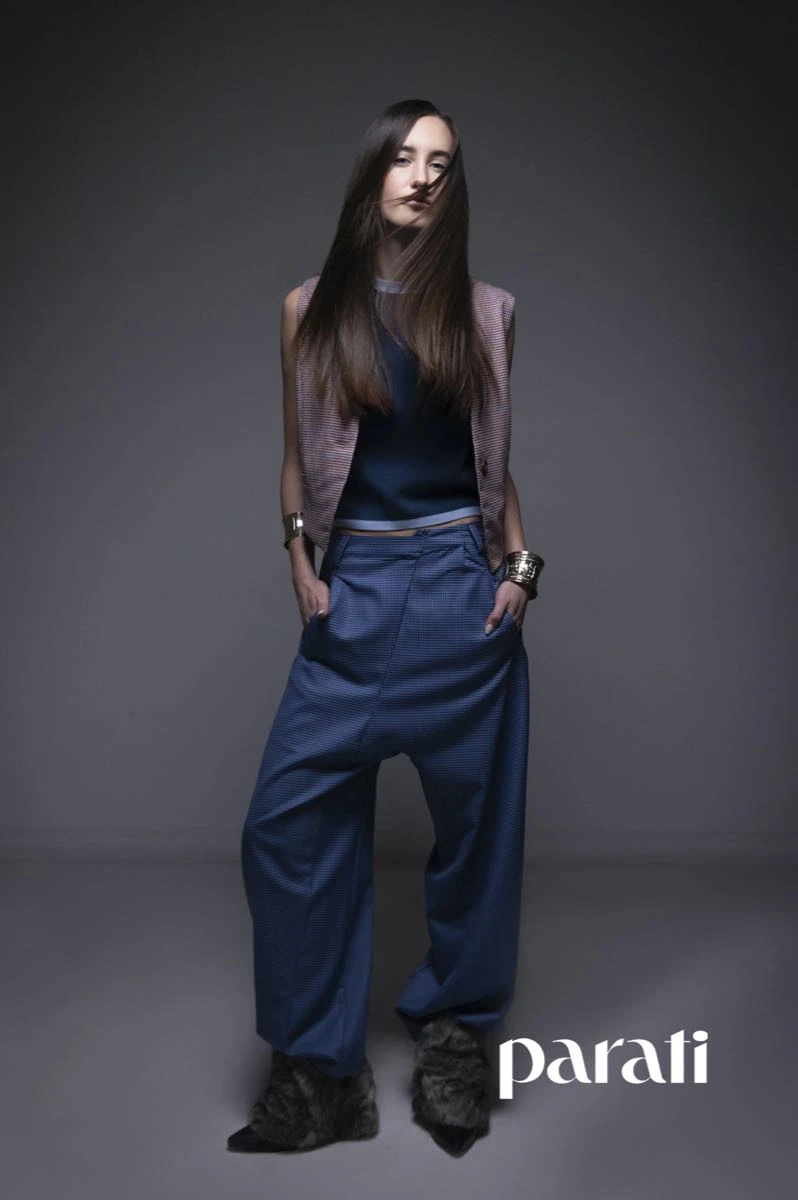 Divertirse con lo que llevamos puesto, esa es la cuestión. Combinar dos tonos diferentes de un mismo cuadrillé requiere una dósis extra de actitud y buen humor. El chaleco de un tradicional corte sastre es una buena opción para llevarlo con un pantalón babucha de tiro largo donde la moldería dibuja recortes que arman una nueva silueta. Para las trendies del grupo, la mejor opción es llevar el ruedo del pantalón adentro de las botinetas con polainas de piel.
