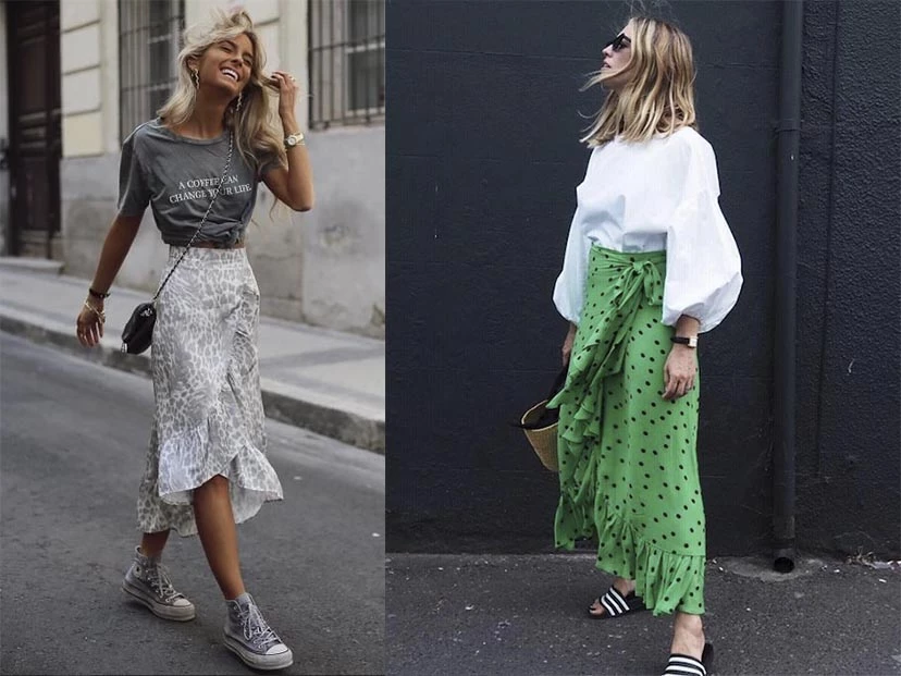 La prenda es, como lo indica su nombre, un híbrido entre una falda y un pareo y se llevan perfectamente en looks urbanos en su versión midi.