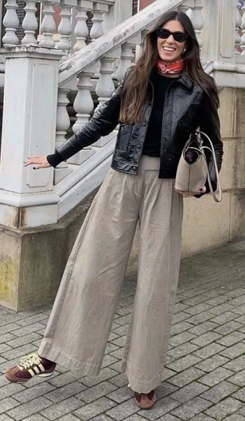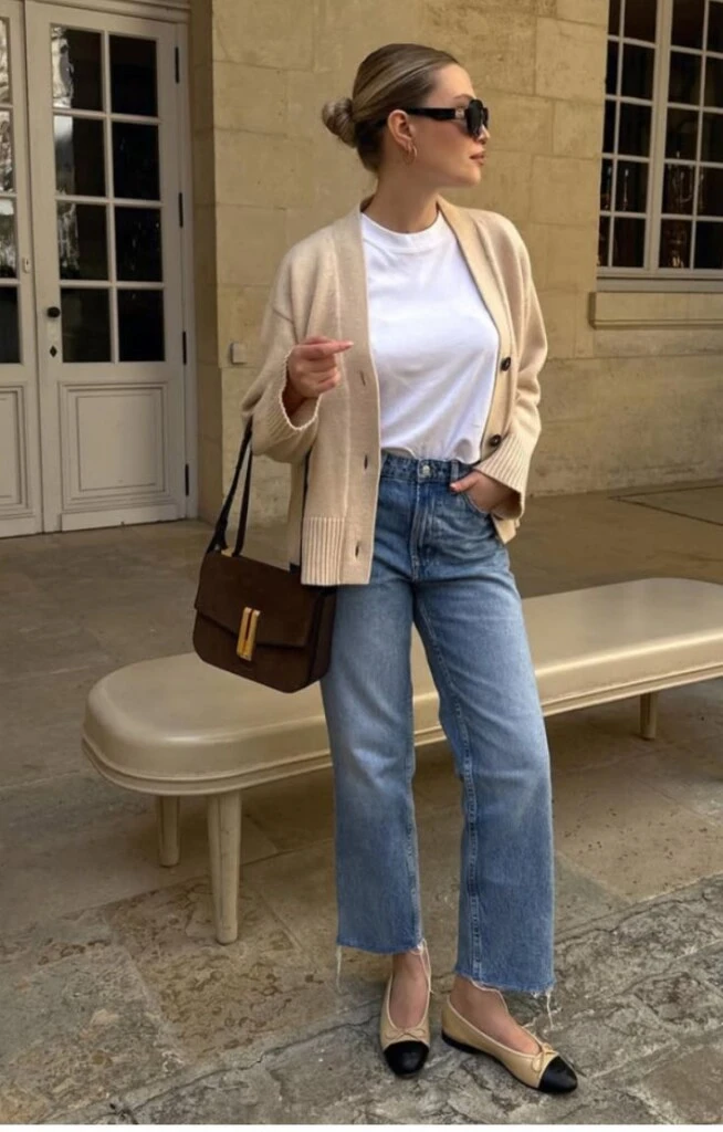Otra opción es un pantalón sastrero + cardigan fino, que suma prolijidad sin perder comodidad.