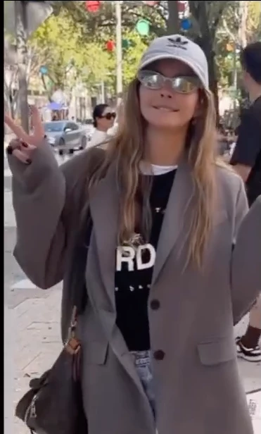 Mientras la China Suárez caminaba por las calles de Estados Unidos fue interceptada por una cool hunter (cazadora de tendencias) quién le preguntó acerca de su cancherísimo look. Ella con mucha simpatía detalló todo su look y confesó que se inspira en la top Hailey Bieber para armar sus outfits.