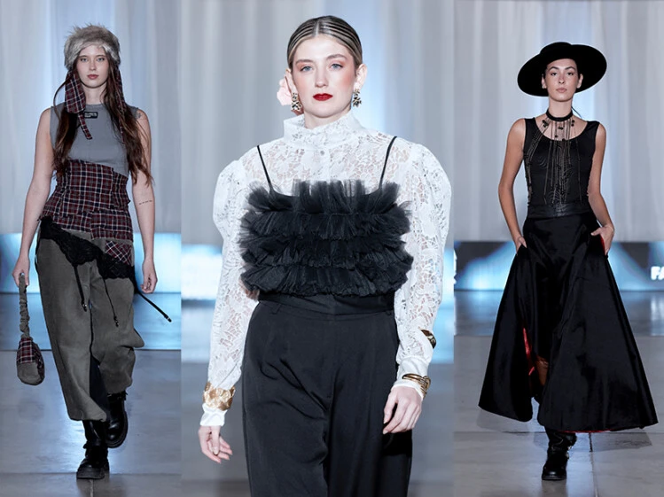 Cecilia González Mestre Raíces: resistencia en blanco y negro Valles y cerros del noroeste traducidos a encaje estructural, a flora y fauna nativas reinterpretadas como textura, a una paleta monocromática que no necesita justificación. Raíces no fue una colección sobre la identidad: fue identidad hecha prenda.