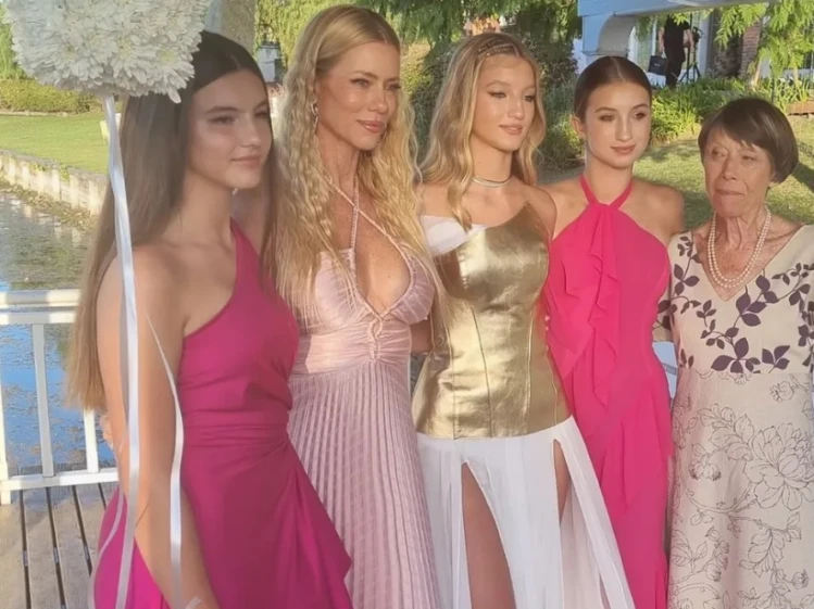 La quinceañera no estuvo sola: su mamá, Nicole Neumann, y sus hermanas, Indiana y Sienna, acompañaron la estética de la noche con estilismos coordinados, todos diseñados por Laurencio Adot.