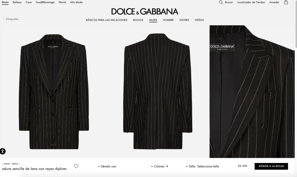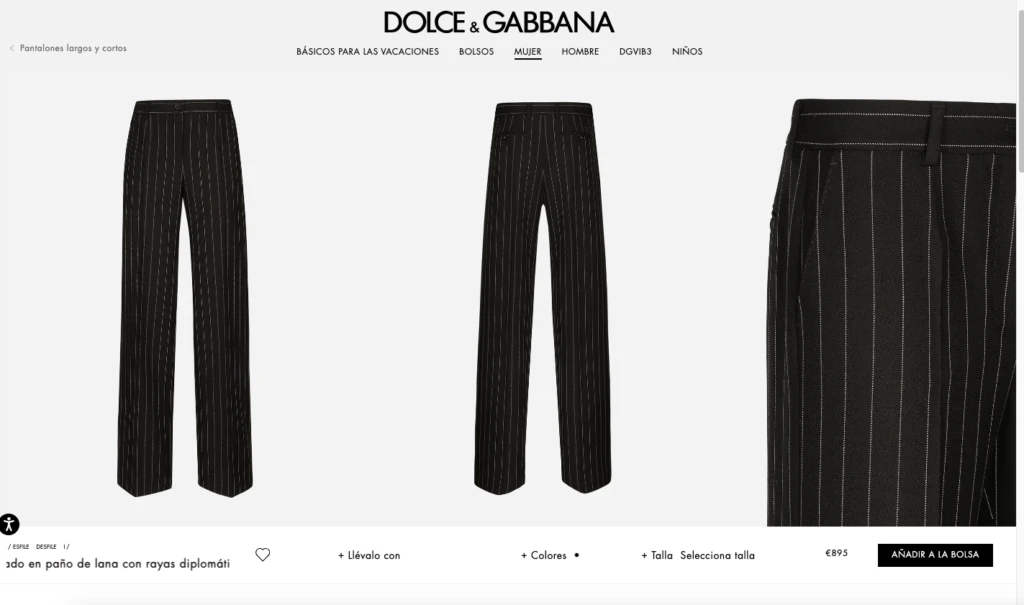 En concreto se trata de un conjunto de raya diplomática compuesto por un saco con simple abotonadura (euros 2.450) y un pantalón ancho de cintura alta (euros 895)