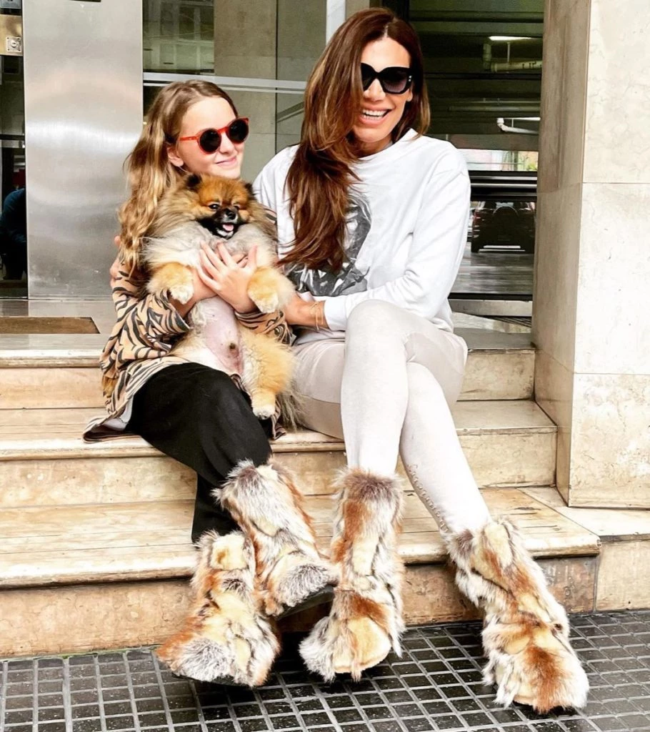 Flor de la V y su pequeña hija Isabella, comparten la misma pasión por la moda y siempre están atentas a las nuevas tendencias. Esta vez, adoptaron las botas de pelo en sus looks invernales para combatir el frío de una manera súper fashion.