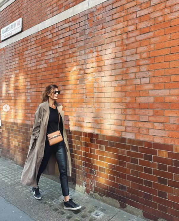 El tercer imprescindible que lució Juliana es el trench, ese abrigo liviano y atemporal que nunca falla. Lo usó en versión tradicional, en color beige, combinado con pantalones de cuero y una polera de color negro. Simple, efectivo y con mucho estilo.