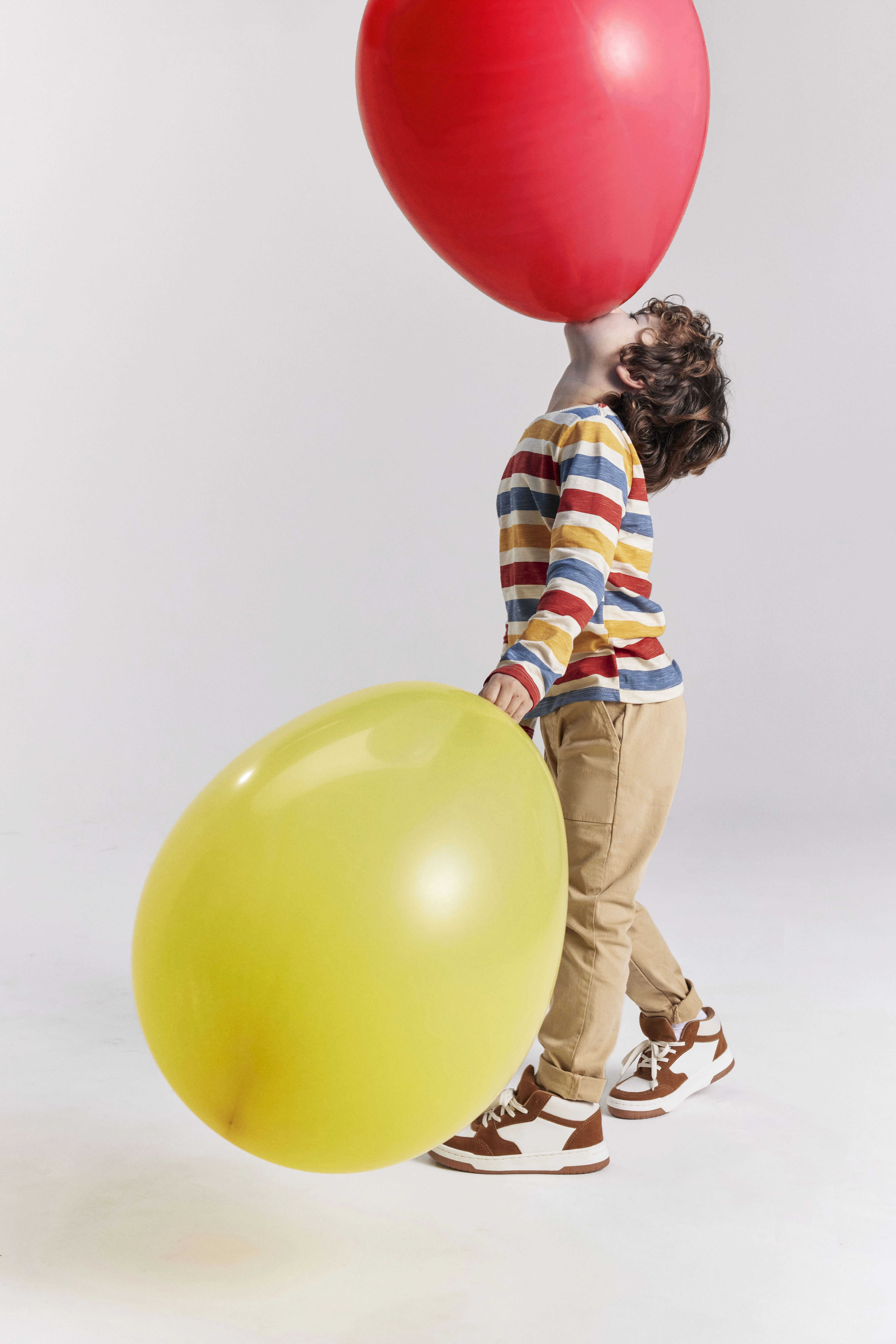 En esta producción especial por el día de la niñez, globos con forma de perritos se transforman en sombreros de exploradores, mascotas fieles o una lluvia de colores que cae del cielo sin previo aviso. Las prendas acompañan cada escena como una segunda piel lista para correr, trepar, inventar, bailar o simplemente descansar después de un día lleno de aventuras.