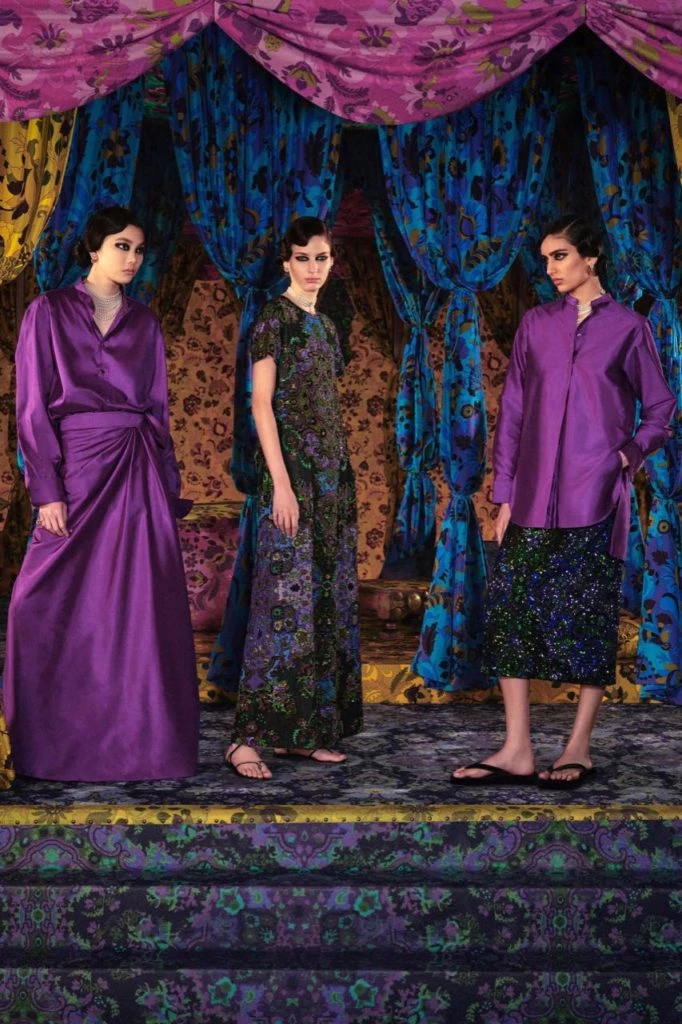 En 1954, Christian Dior presentó un vestido encorsetado en la colección de alta costura de auqel otoño: la tela caía estilo sari sobre un hombro. Su sucesor, Marc Bohan, llevó su colección de alta costura de la primavera de 1962 a Mumbai y Delhi para desfiles a beneficio. Y ahora es María Grazia Chiuri quien se inspira en la India para crear su nueva colección pre fall 2023.