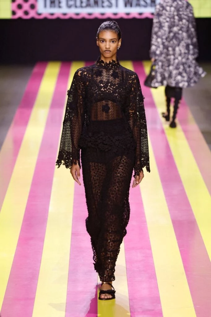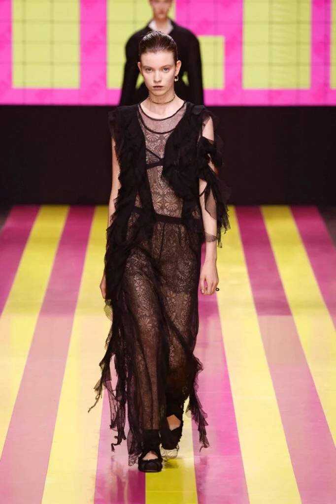 La diseñadora italiana conjugó siluetas del presente y pasado y así definió una maravillosa colección donde se hicieron presentes maxi vestidos negros con tul y diseños que emulan a delantales o con cuello babero; inspirados de alguna manera y por este orden, en las brujas y su imaginería, las amas de casa, y las institutrices.